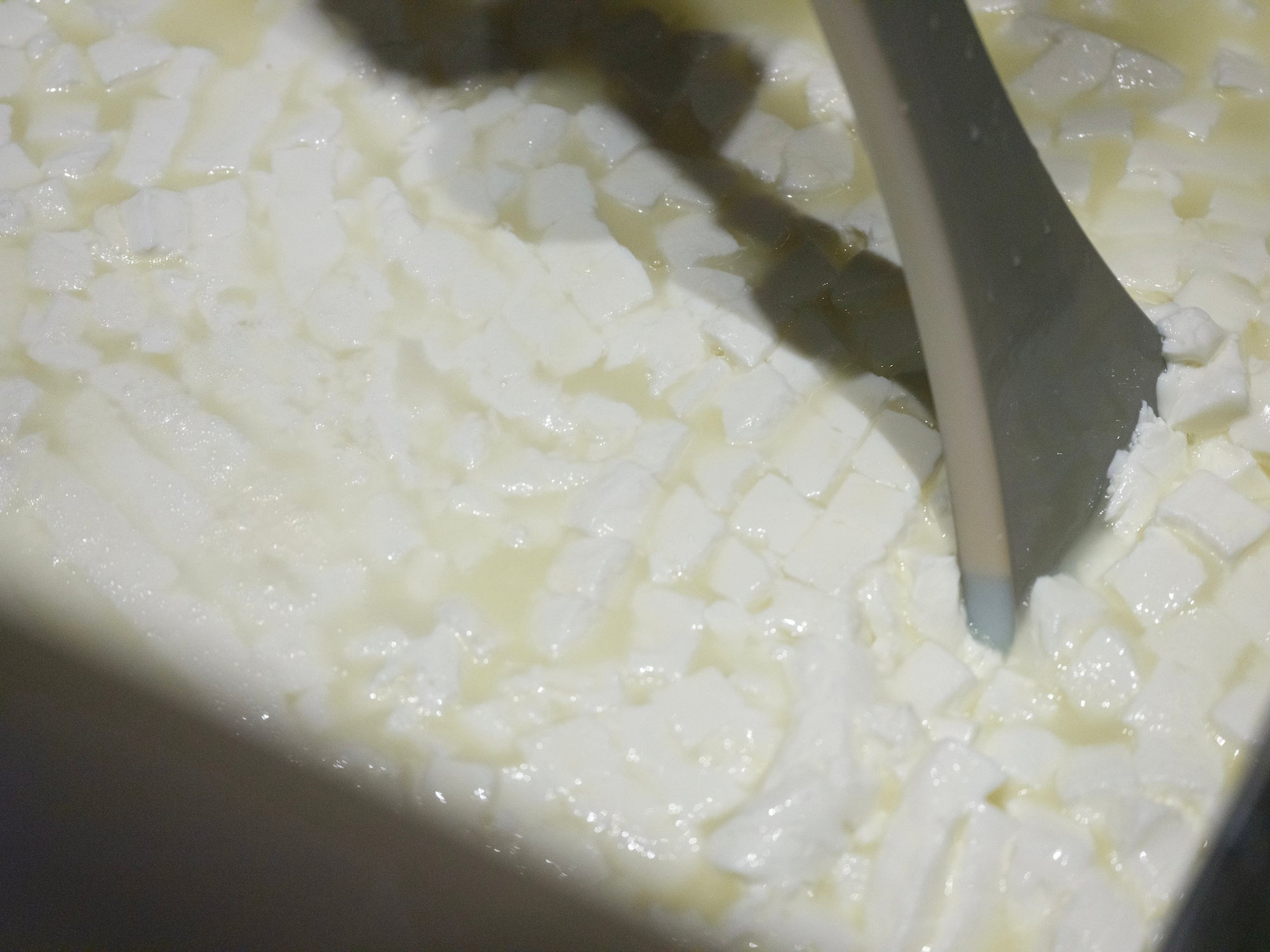 熟練の職人がひとつひとつ手作業でチーズを作る、店内中央のチーズ工房。ダイナミックな動きにも注目。