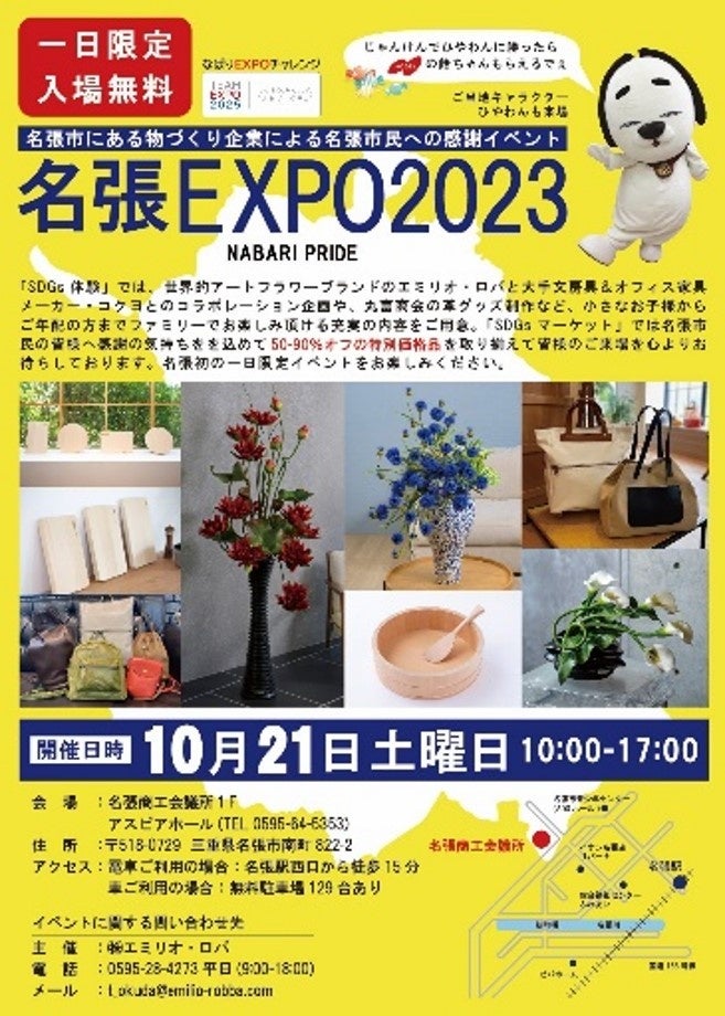 イベントに関する問い合わせ先: 株式会社エミリオ・ロバ TEL.0595-28-4273(平日9:00~18:00)