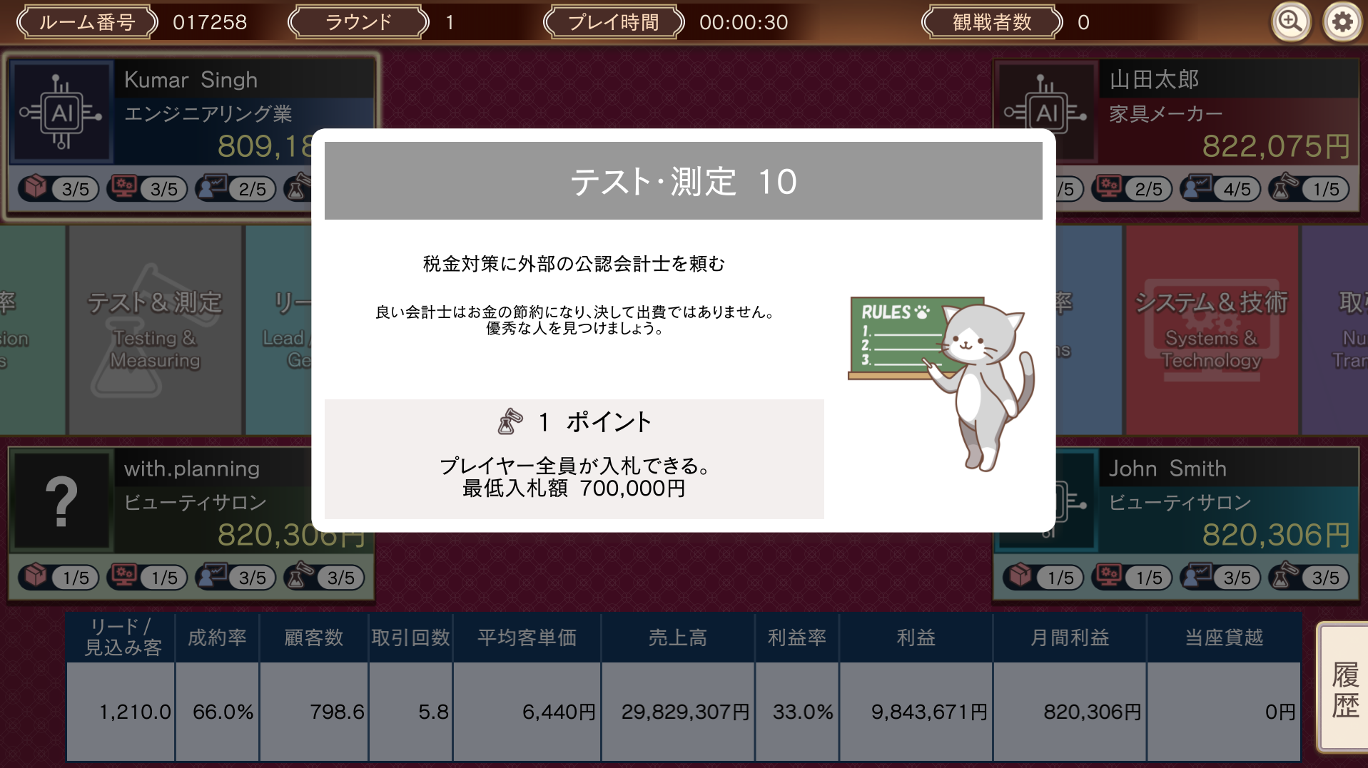 もし対戦相手が不在の場合は、AIプレイヤーが代理でプレイすることも可能です。AIプレイヤーは様々なレベルや戦略を持っており、あなたのビジネススキルを試すことができます。