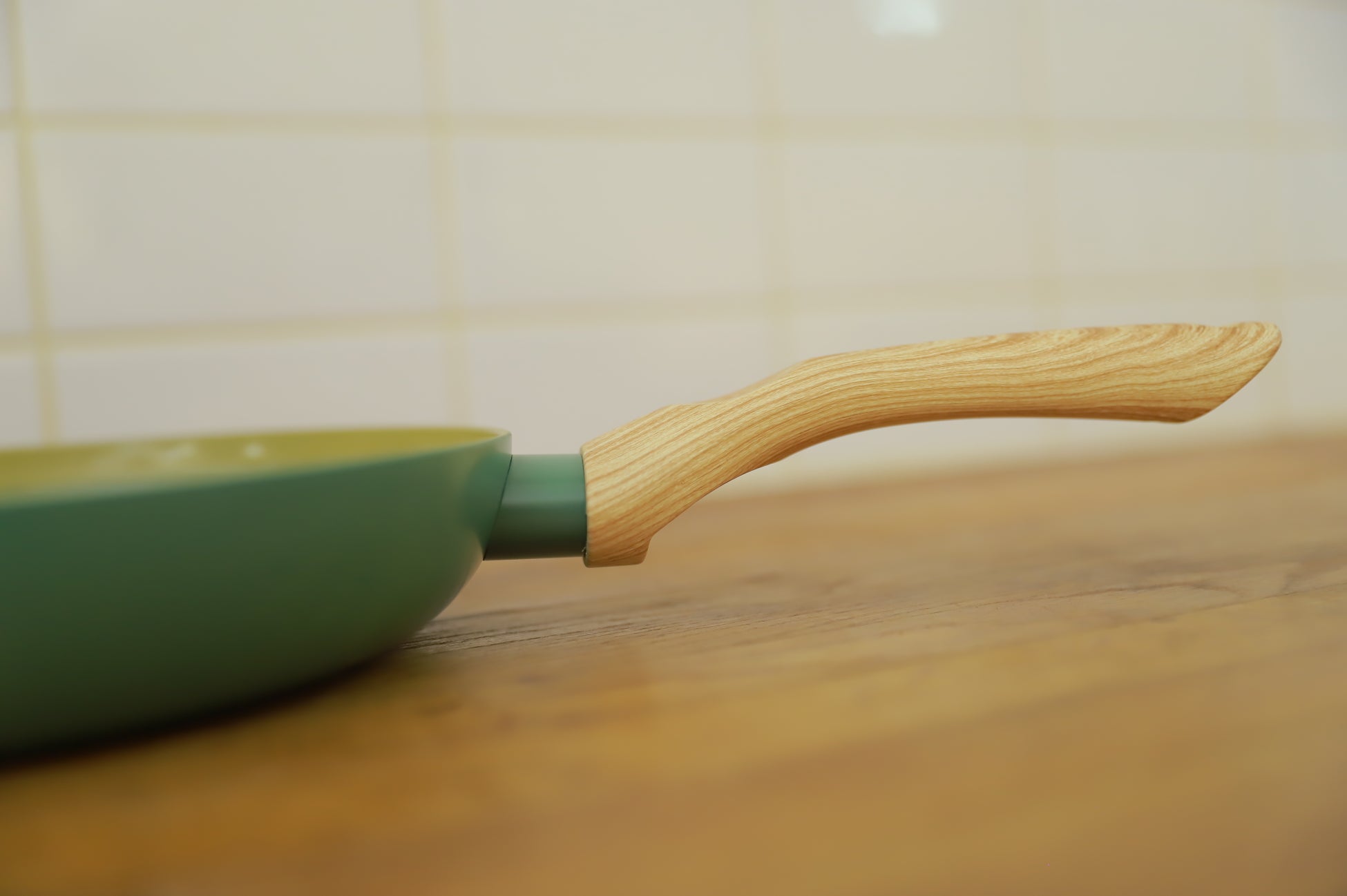 セラミックコーティングのフライパンは白色が多くありますが、白色が故に汚れが目立ちやすいというデメリットも。アムヴィーガンは明るいオリーブカラーで調理中の食材が見えやすいだけでなくキッチンや料理に彩りを与えてくれます。