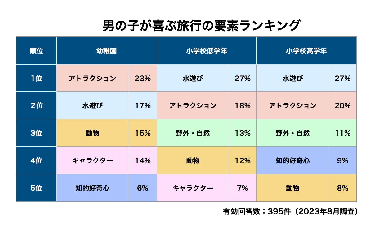 〜子供が喜ぶ旅行の特徴を性別と年齢別に発表〜
