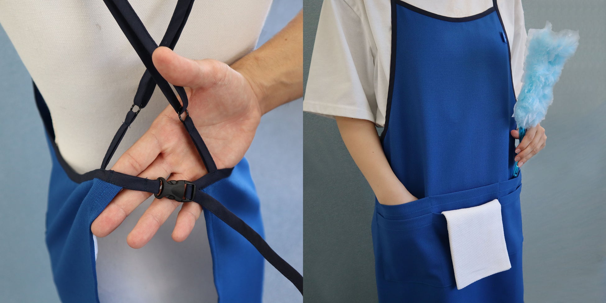家事作業のプロによる、隅々まで徹底した作業クオリティとスピードが必要となる現場において、より求められる効率性やプロユースの使いやすさを追求したエプロンが完成しました。