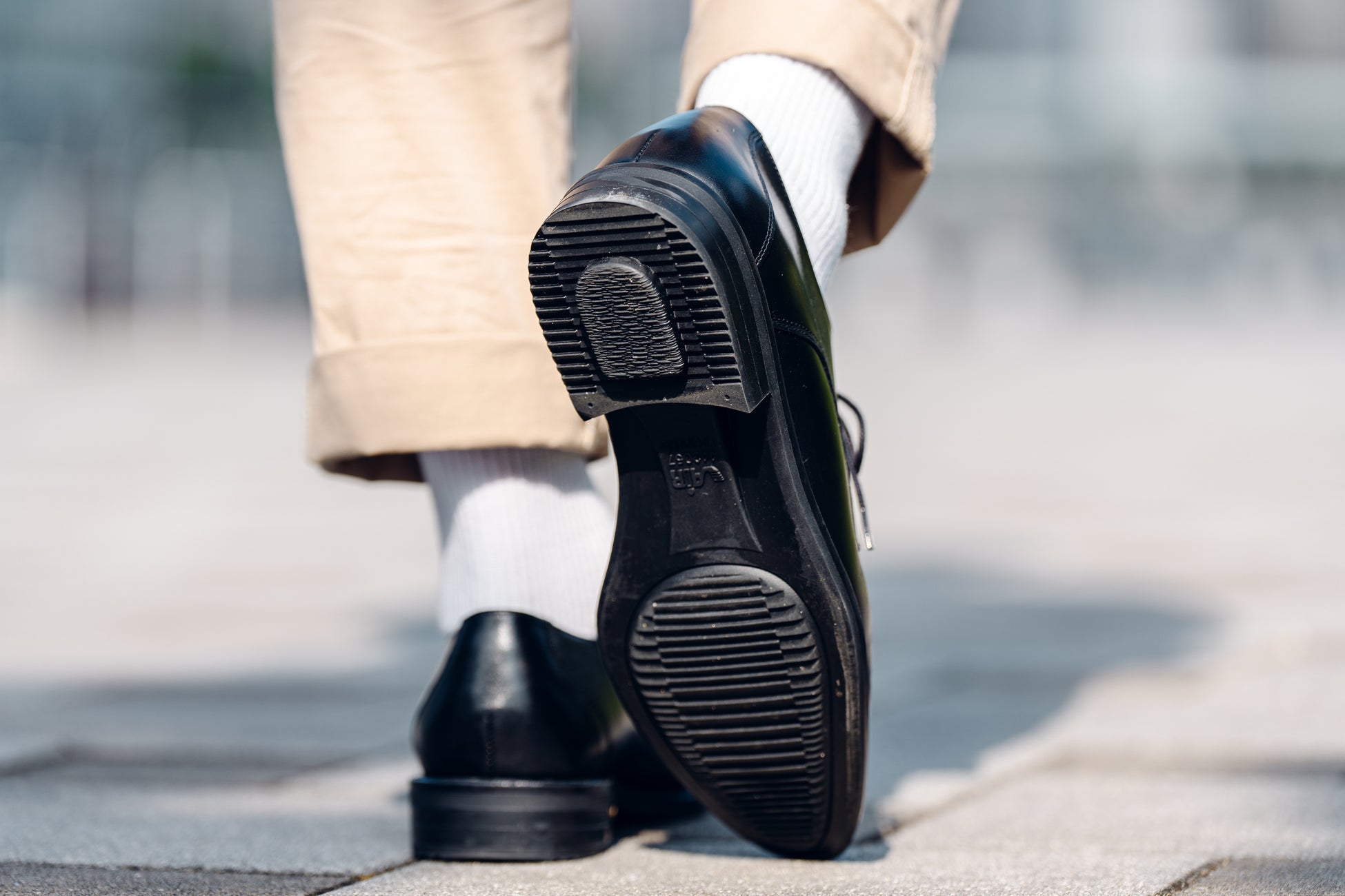 靴底のかかとにあるポンプは、空気を循環させるほかクッションの機能も果たし、長時間歩いても足を疲れにくくします。もちっと厚いクッションの上を歩いているような感覚はやみつきになる人も多出。革靴にありがちな靴底の硬さを感じさせません。