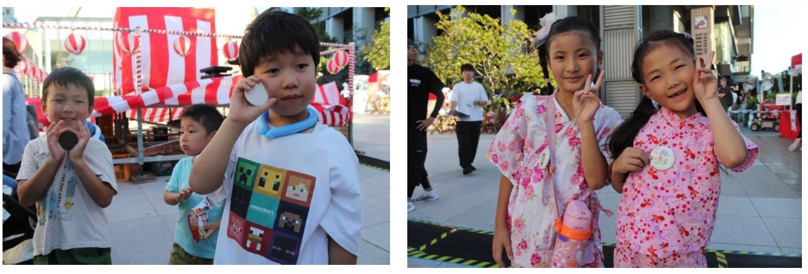 また、富士見二丁目町会主催で「こども花火(手持ち花火体験)」が実施されました。最近ではなかなか手持ち花火を体験する場面も少なくなったのか少し慣れない手つきながらも、各々で楽しんでいる様子が見られました。縁日ブースでは輪投げとヨーヨー釣りを実施しました。行列が途絶えない盛り上がりを見せておりました。どのエリアも非常に子どもたちの熱気が強く感じられました。