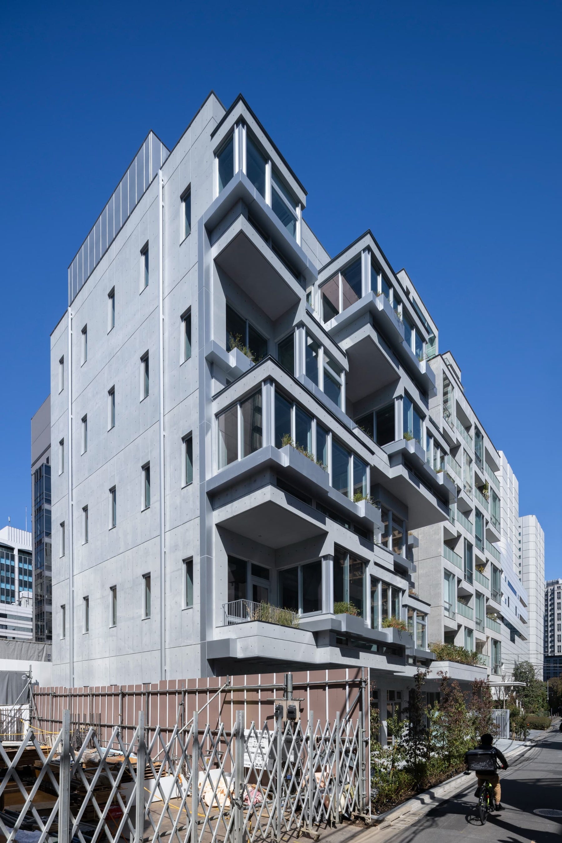 前面ファサードの凹凸によって、日の当たり方が様々なヒューマンスケールの居場所が、窓の近くやテラスとして多く生まれている。それだけでも非常に魅力的だが、四方向に窓を確保したことで十分な通風を確保しつつ、ファサードの凸凹が風を和らげる効果もあり、室内に心地よい風を取り込むことができるという。天空率を最大限活用し、環境シミュレーションも掛け合わせることで、生き生きとしたファサードと人の居場所が実現されていることを評価した。緑が繁っていくと、凸凹のファサードと相まって、より有機的な表情になってくると想像している。