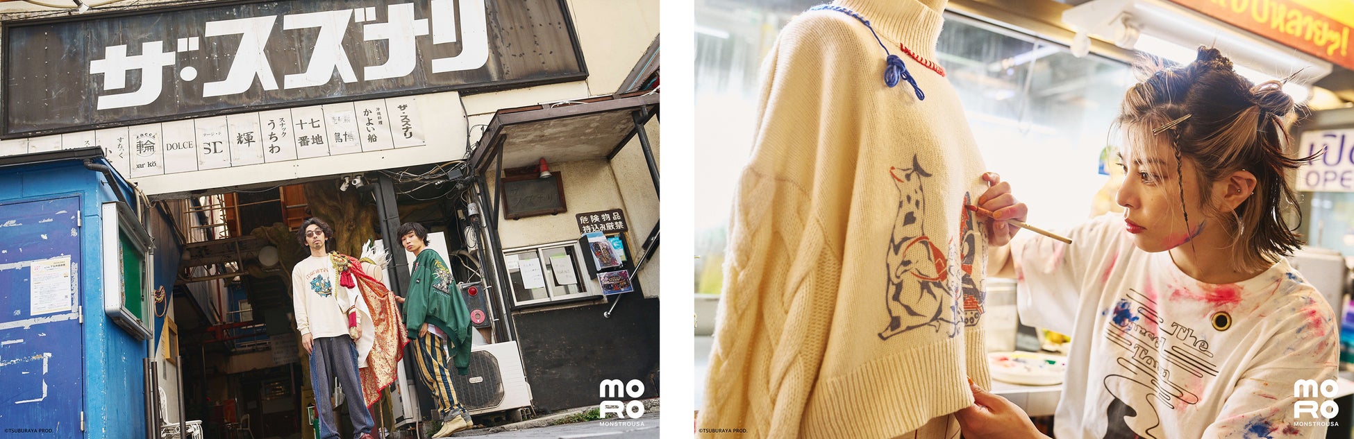 ビジュアル撮影には俳優の柄本時生さん、女優の さとうほなみ さん、アーティストのSHISHUMANIAさんを起用。MONSTROUSAデザイナーの岩男海史も撮影に参加し、このブランドでしか味わえないストリートエモーショナルな世界観を完成させました。