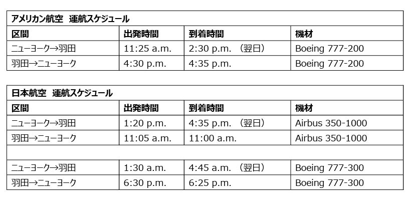 今回新たに開設される羽田―ニューヨーク線は、共同事業パートナーである日本航空との既存便を補完します。羽田―ニューヨーク間をご利用されるお客様は、便利な時間帯に運航される1日最大3便から選択できるようになります。