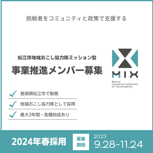 2024年春採用の松江市地域おこし協力隊ミッション型にて募集中
