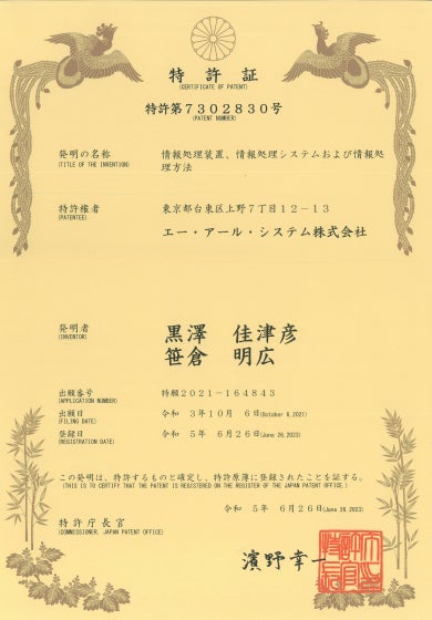 ・特許権者:東京都台東区上野7丁目12-13 エー・アール・システム株式会社
