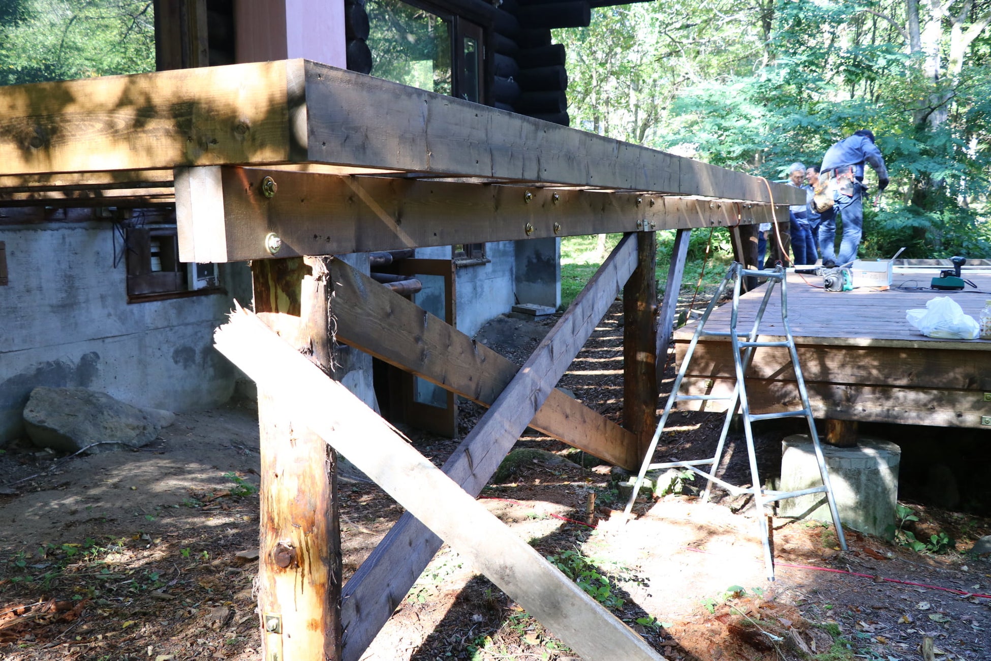 工事の際は、卒塾生で今でも大工をしている方を中心としたチームが駆けつけてくださり、崩壊していたデッキを美しく復活させてくださいました。