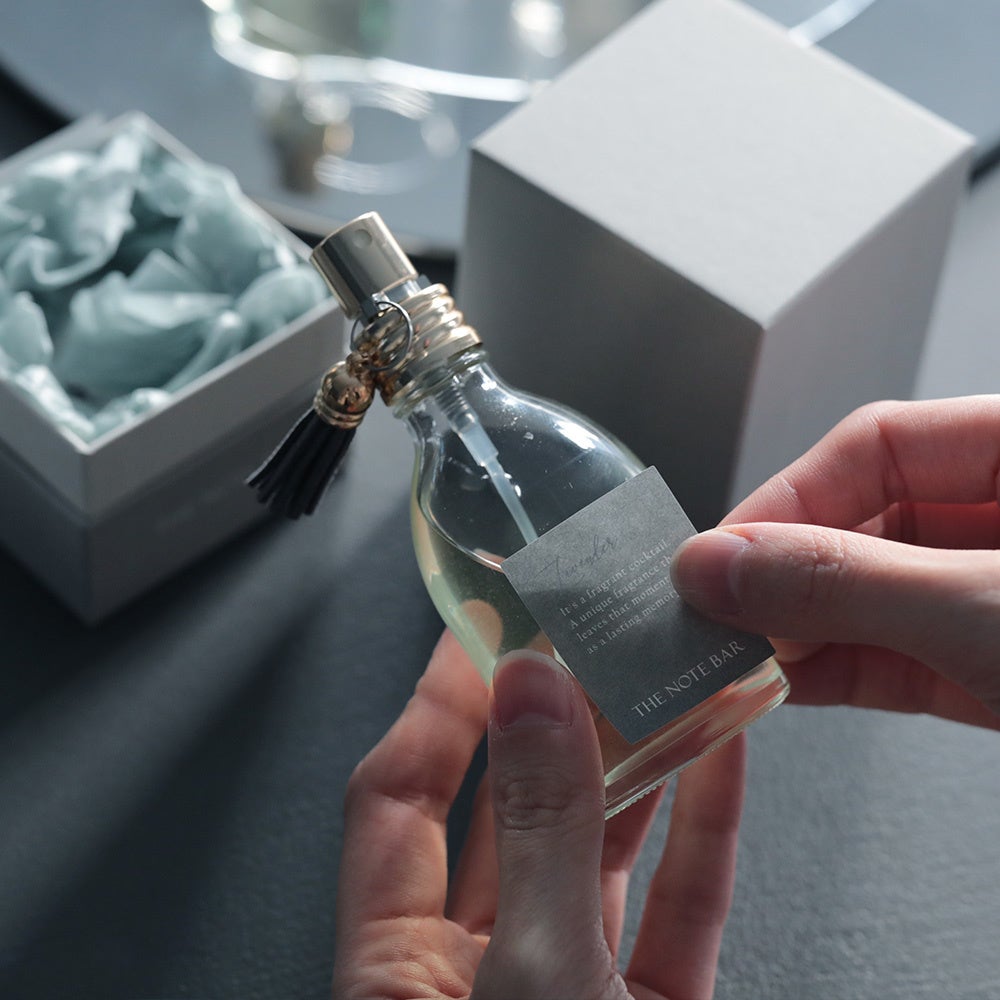 これまで香りの持続やコストが重要視され、合成香料が使われることが多かった香水業界ですが、合成香料は香りが強く頭痛などの原因にもなり、香りに敏感な方には苦手意識を持たれ“香水=香害”認識もあるほどでした。しかし、THE NOTE BARでは、そんな香水に対する意識を変えるべく、全て天然香料での調香にこだわりました。天然香料は、草花や樹脂、スパイスなどから得られるナチュラルな香りのエッセンスで、やわらかく香り、繊細に持続し、リラックスやリフレッシュなどアロマテラピー効果も期待できます。【思わず深呼吸したくなるフレグランス】です。