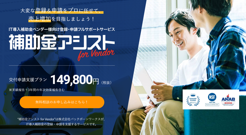 バックボーンワークスがIT導入補助金ベンダー様向け登録・申請フルサポートサービス「補助金アシスト for Vendor」の提供を開始