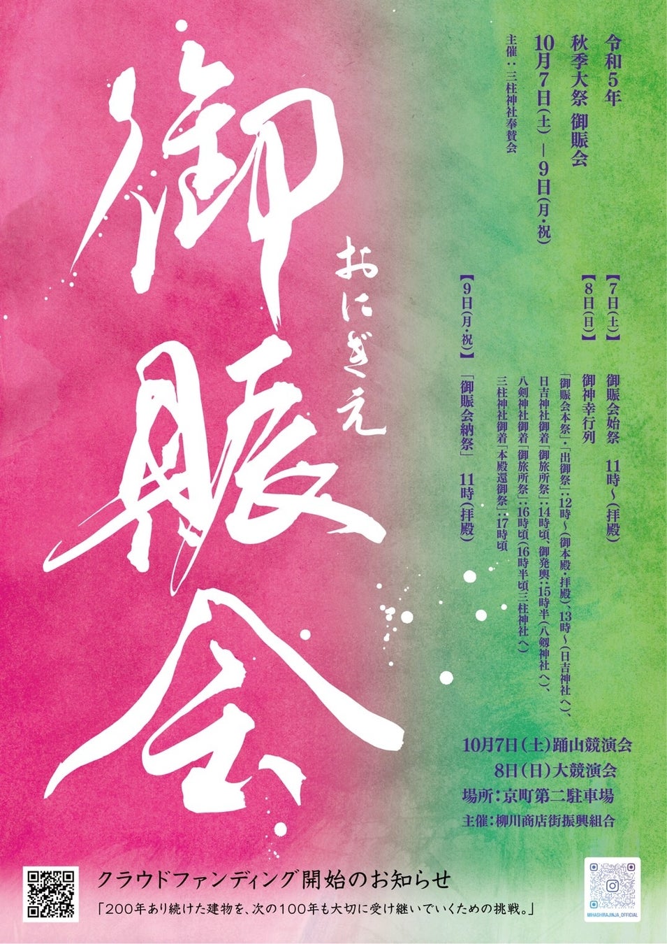 三柱神社 秋季大祭【御賑会】(おにぎえ)を斎行いたします