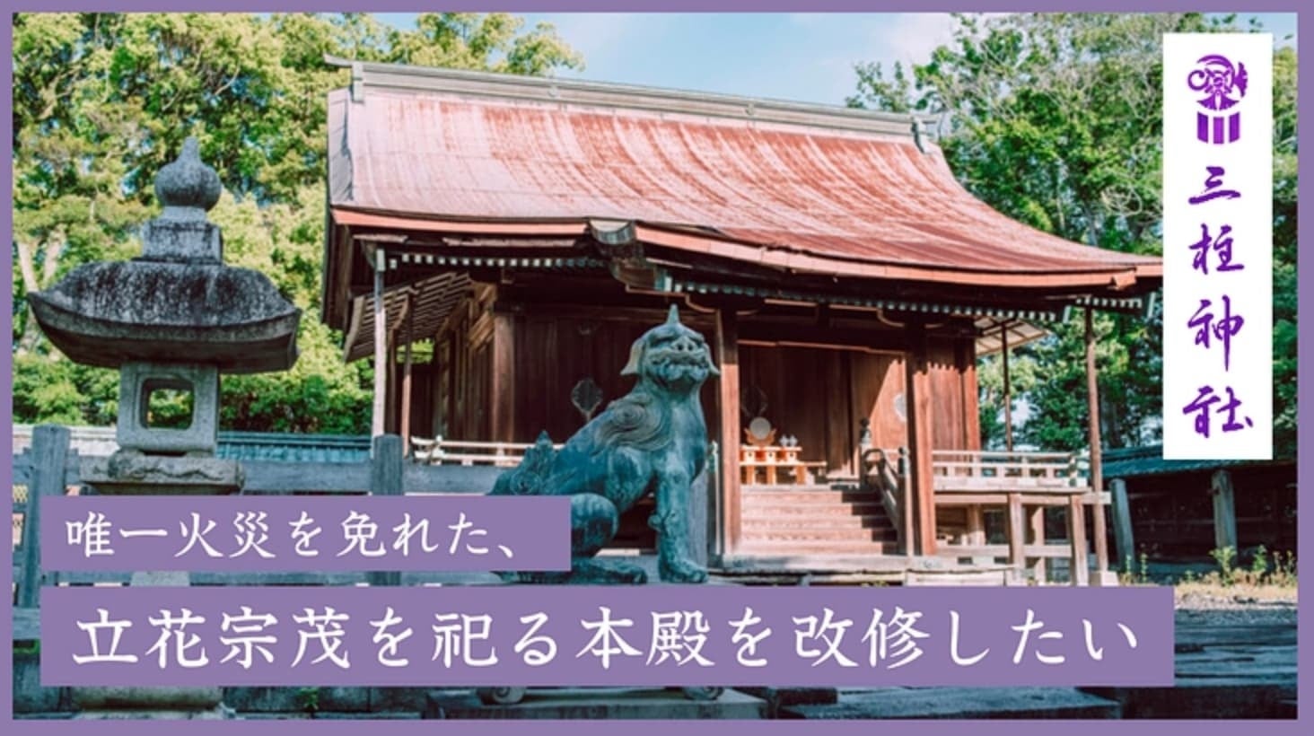 ・プロジェクトタイトル:三柱神社 第二弾|唯一火災を免れた、立花宗茂を祀る本殿を改修したい