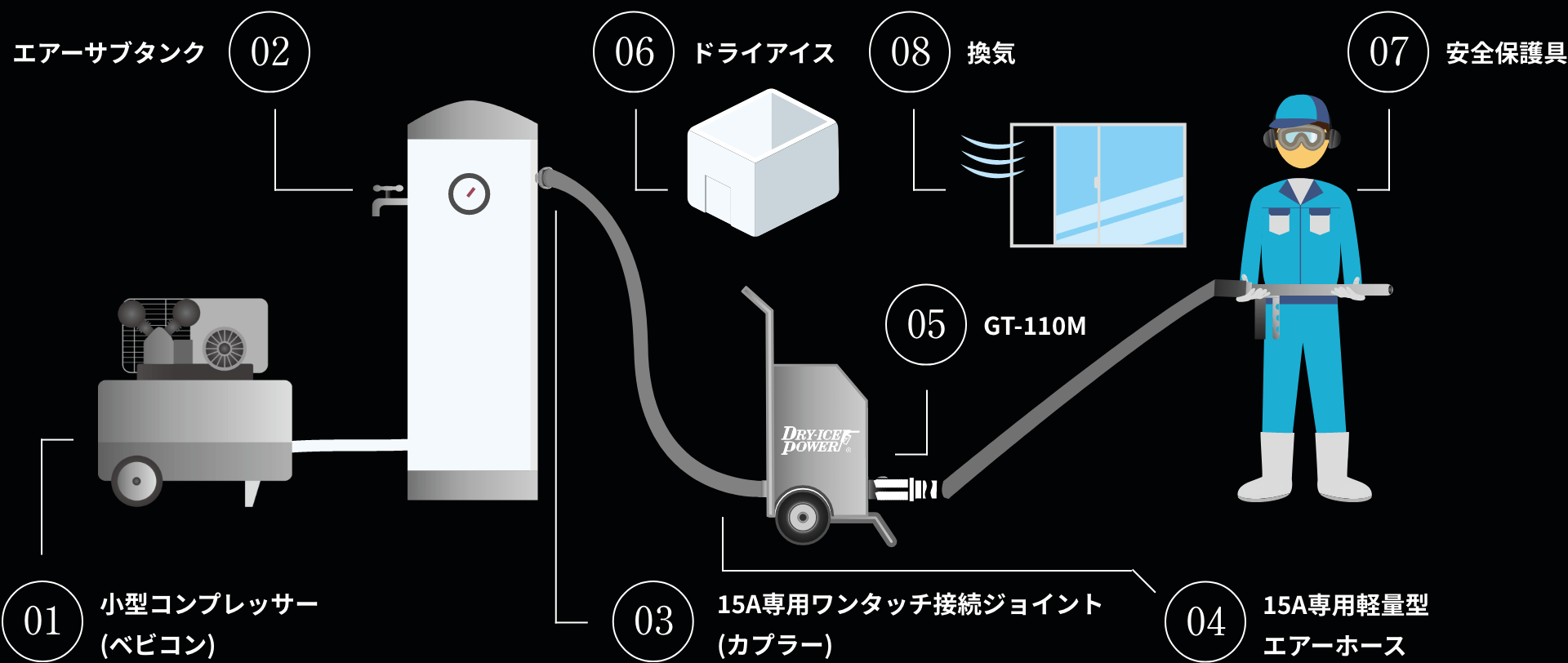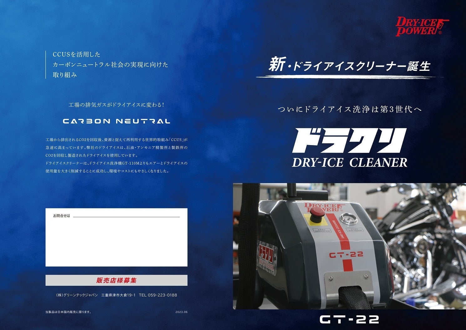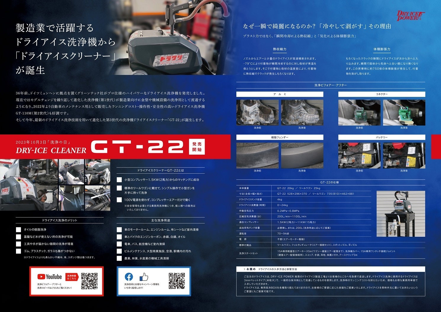 このような最新ドライアイス洗浄技術を用いて軽量コンパクトにした「ドライアイスクリーナーGT-22」が誕生します。