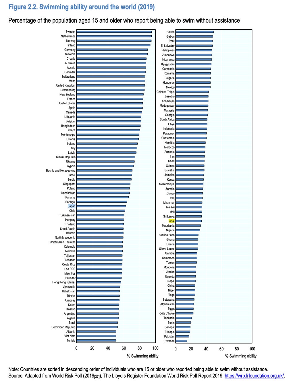WHOの発表によると、インドでは毎年5万人近くが溺死しており、そのうち3割は15歳以下の子どもが被害に遭っています(WHO 2021, Regional Status Report)。人口比で見てみても、これは日本の3倍の数字です。インド政府が毎年発表する国民の死因調査によると、事故死のうち9.1%が溺死によるもので、事故死因の中で三番目に多いことがわかっています。しかし国内での溺死に対する意識は低く、これまで十分な調査はおろか、水害時のプロトコールも存在していません(Veetil, et.al, 2017)。