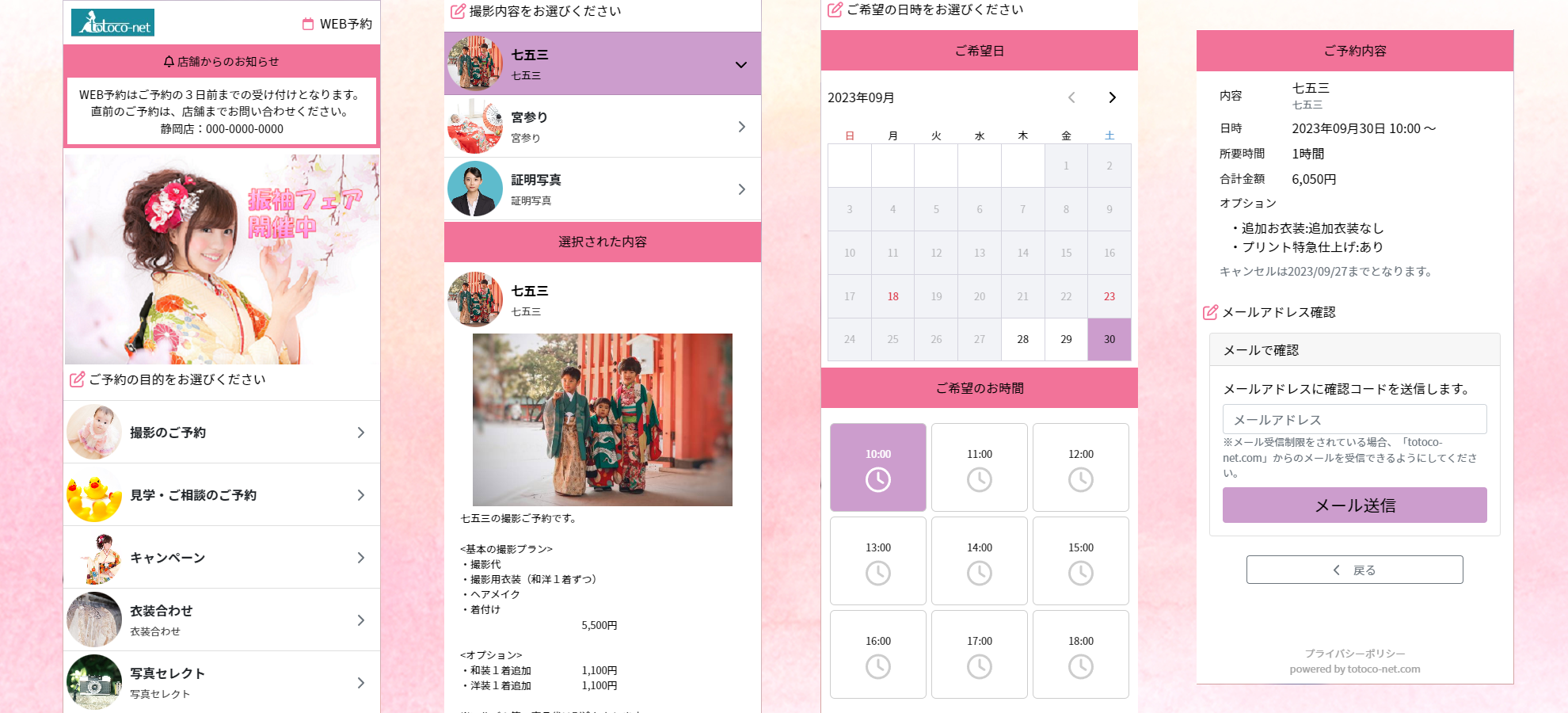 この度、その弊社システム「スマートフォトスタジオ」とシームレスに連携するWEB予約システムtotoco-netをリリースしました。