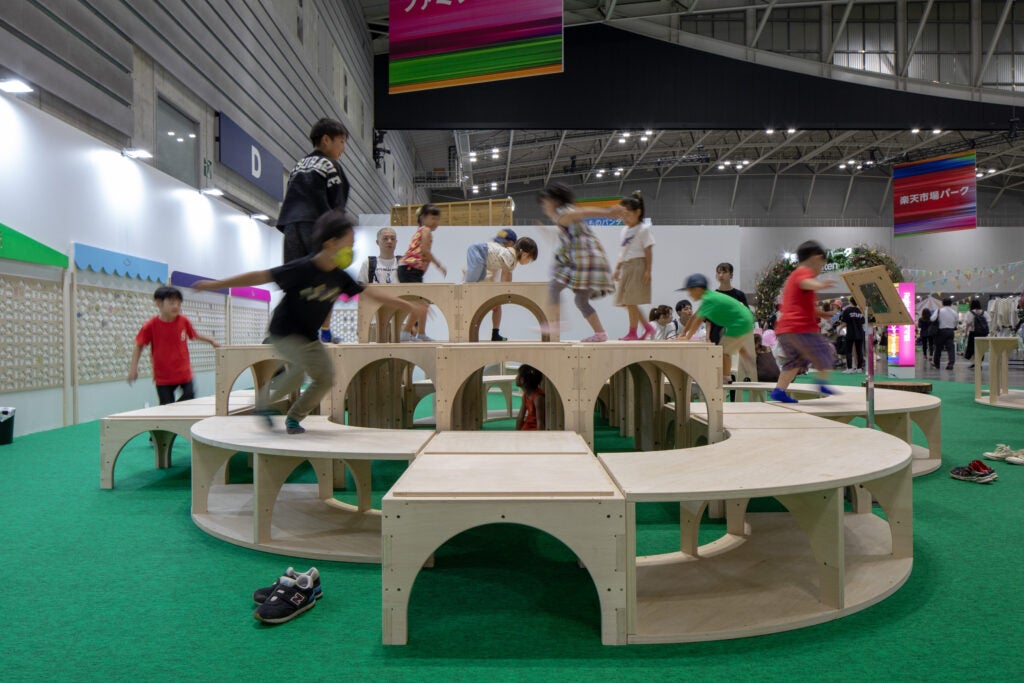 デジタルテクノロジーによって建築産業の変革を目指す設計集団であるVUILDが、木製什器の「タウンユニット」と、本イベントのシンボルとなる来場者と一緒に作り上げるガーランドオブジェを設置。公園を楽しむ木製アイテムのDIYワークショップも開催。