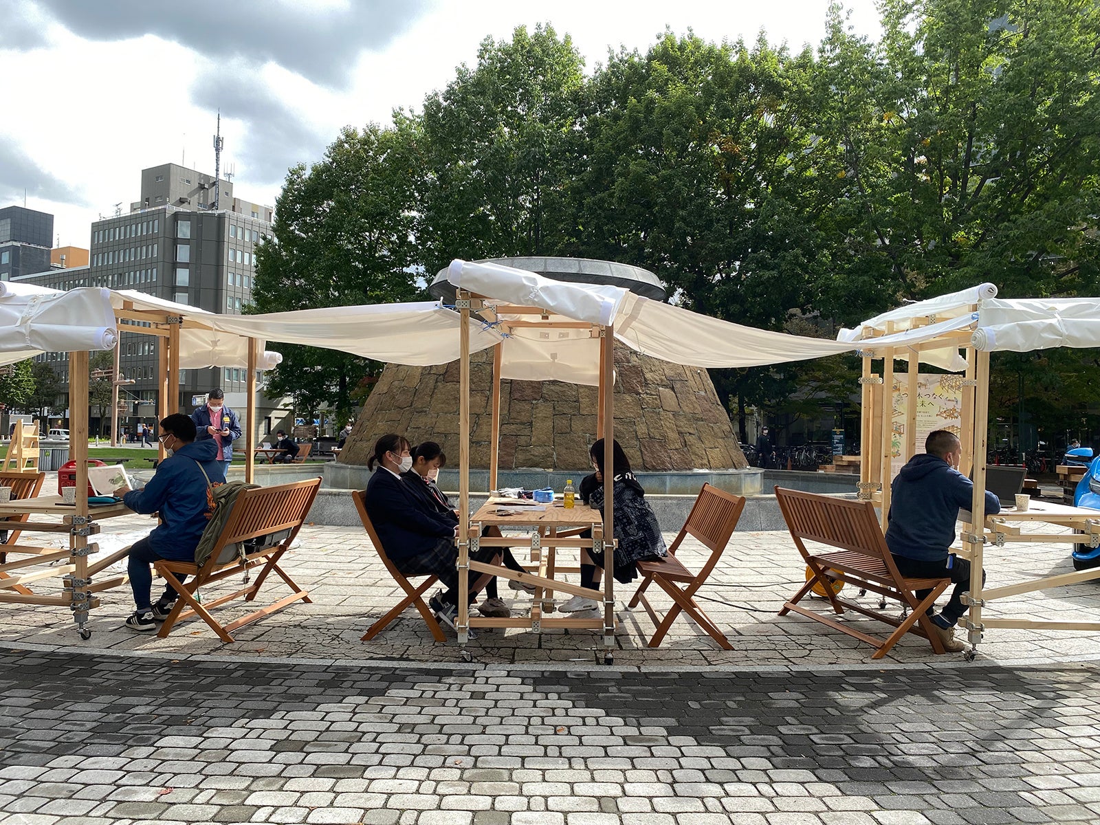 日建設計が企画・プロデュースした可変式木質ユニット「つな木」を、本イベント期間中にカフェや飲食店のファーニチャーとして活用することで、人々が滞在し、自由に時間を過ごせる空間を創出。