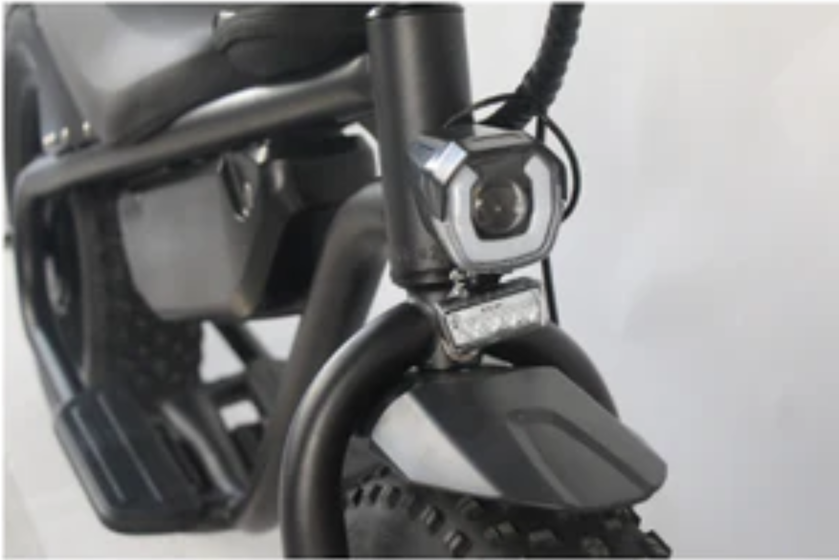 フロントライトを初期装備。クラクションと、最高速度表示灯(緑ランプ)を備え付けています。