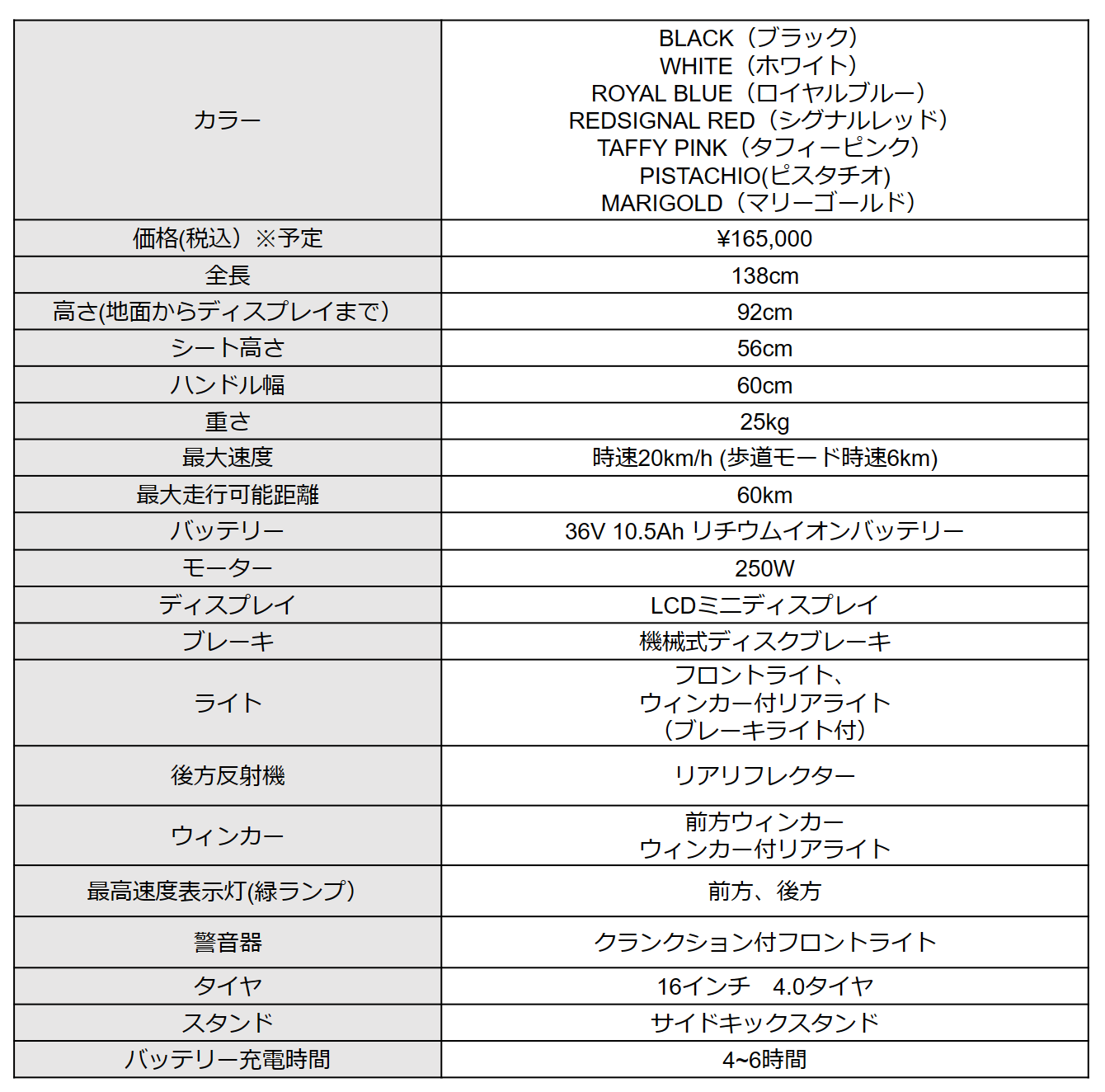 eバイク「WONKEY」スペック