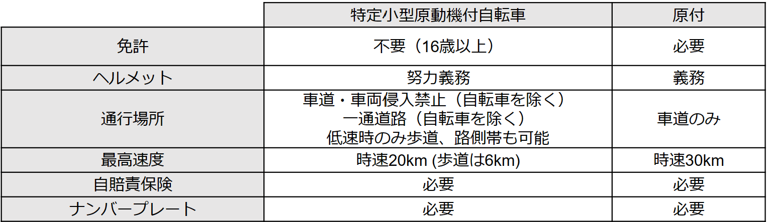 ※特定小型原動機付自転車とは、2022年4月に道路交通法改正案により新しくできた軽車両(自転車)と原付の間の区分。