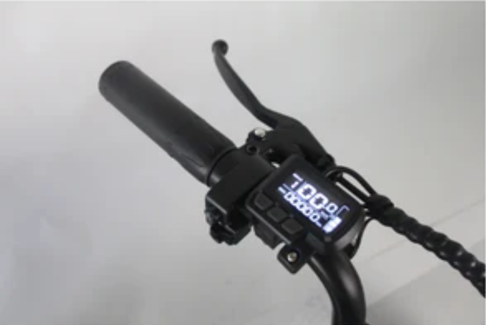 見やすいディスプレイと、ライト、ウィンカー、クラクションスイッチ。