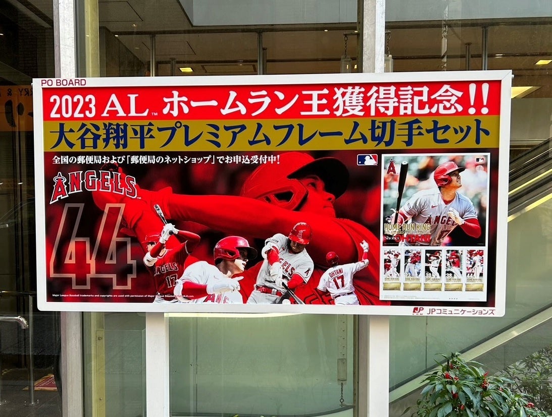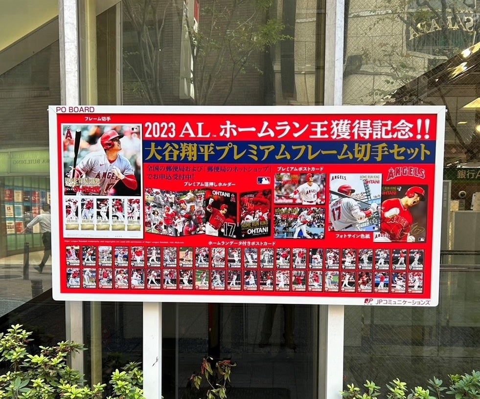 広告掲出の第1弾として、「2023 AL™ ホームラン王獲得記念 大谷翔平プレミアムフレーム切手セット」※の広告を掲出します。