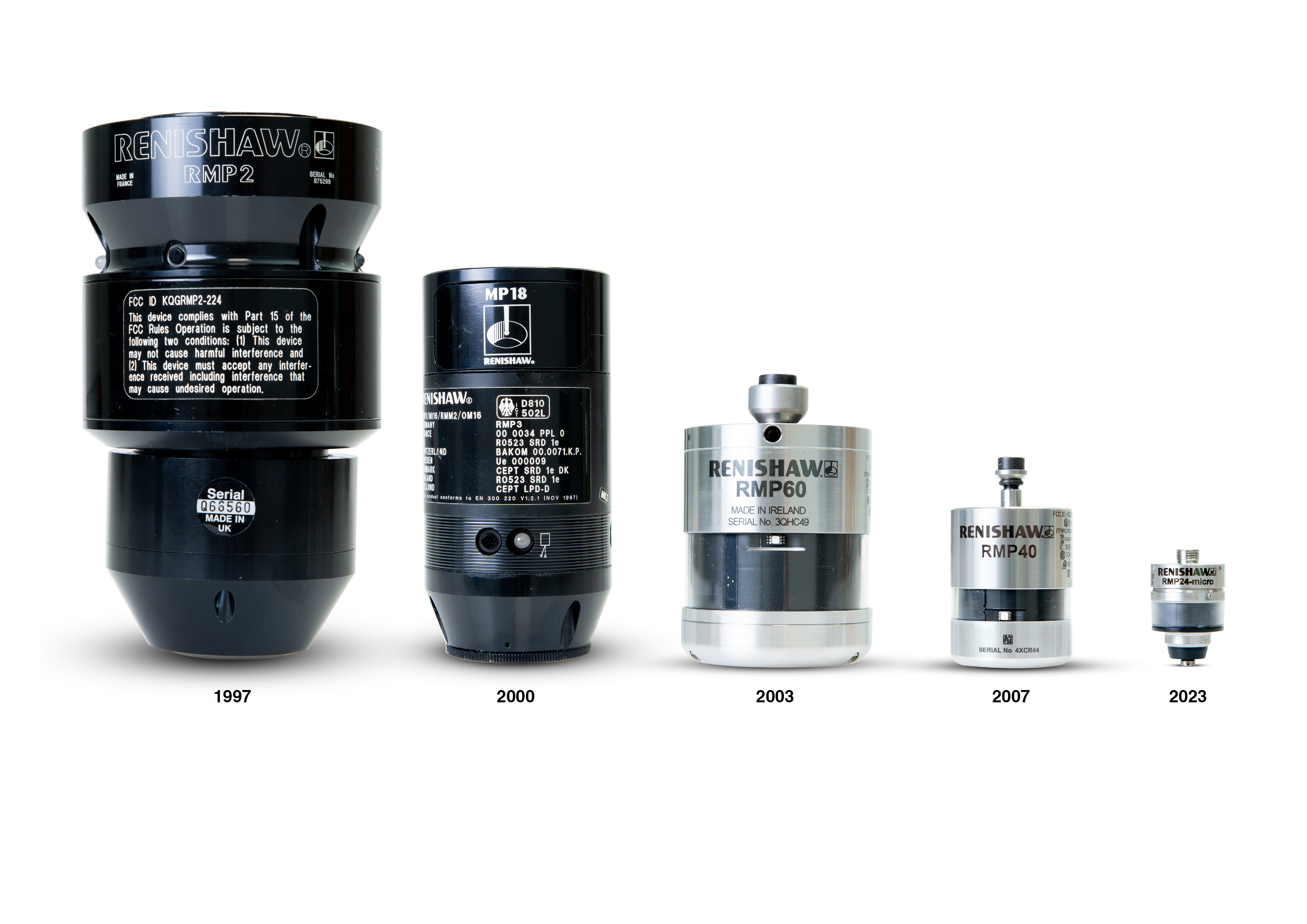 RMP24-micro は、RMI-QE 無線インターフェースを介して工作機械コントローラと通信するレニショーの最新の無線通信プロトコルを採用しています。動作範囲は最大 5m で、世界各国の無線規格に準拠した 2.4GHz 周波数ホッピングスペクトラム拡散( FHSS )プロトコルを採用しています。FHSS 技術により、プローブとインターフェースの両方が通信を維持したままチャンネル間を移動できるため、プローブ計測システムは、Wi-Fi、Bluetooth などの他の無線が飛び交う環境でも安定して動作します。