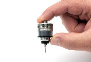 RMP24-micro 工作機械用無線信号伝達式プローブは、直径わずか 24mm、長さ 31.4mm の世界最小の工作機械用無線信号伝達式プローブです。RMP24-micro は、その小型サイズだけでなく、市場をリードする計測性能を備えており、0.35µm ( 2σ 値) の測定繰り返し精度と低い測定圧力により、医療、時計製造、マイクロメカニクス産業などの高価値、高精度コンポーネントを製造するコンパクトな機械に最適です。