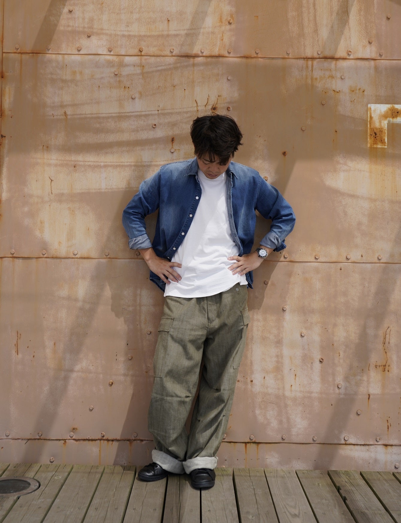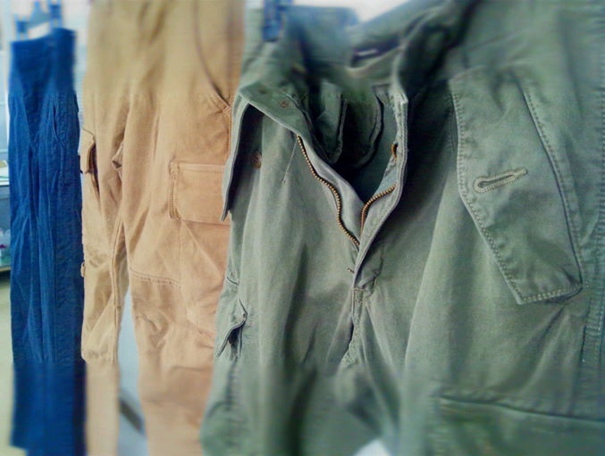 長く取り扱ってきたアイテムは、ワークカジュアル、ミリタリーカジュアルです。特に軍パンは長年の得意分野でした。あるスタッフ(50代女性)が「うちで作るカーゴパンツって、なぜだかキレイ…カッコいいのよね…」とつぶやきました。