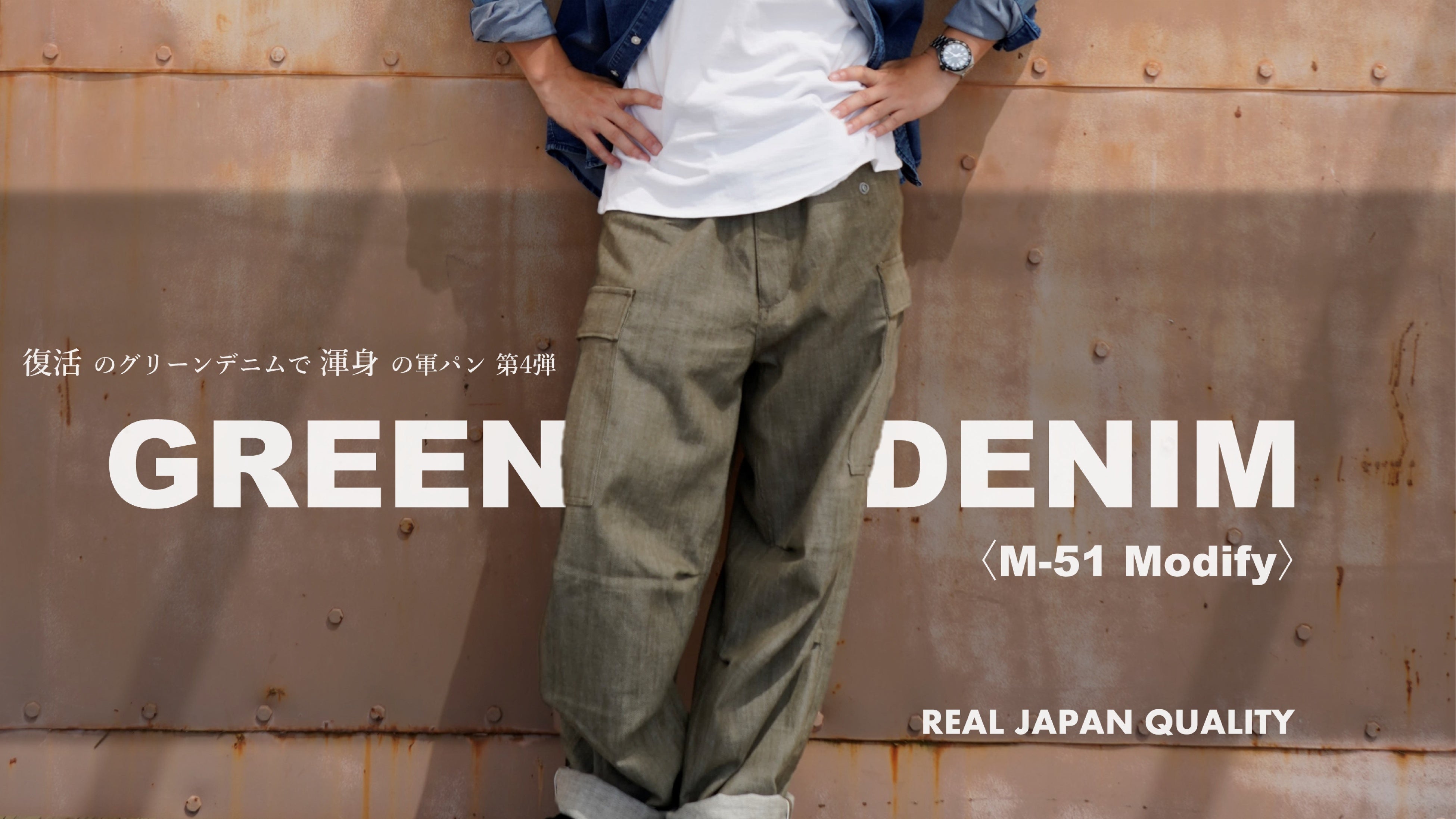 目標達成率500%超え。クラウドファンディング終了まであと10日。グリーンデニムで【第4弾】。幻の素材に心が高ぶる。ワークウェア工場がM-51をアップデートし渾身の「軍パン」。