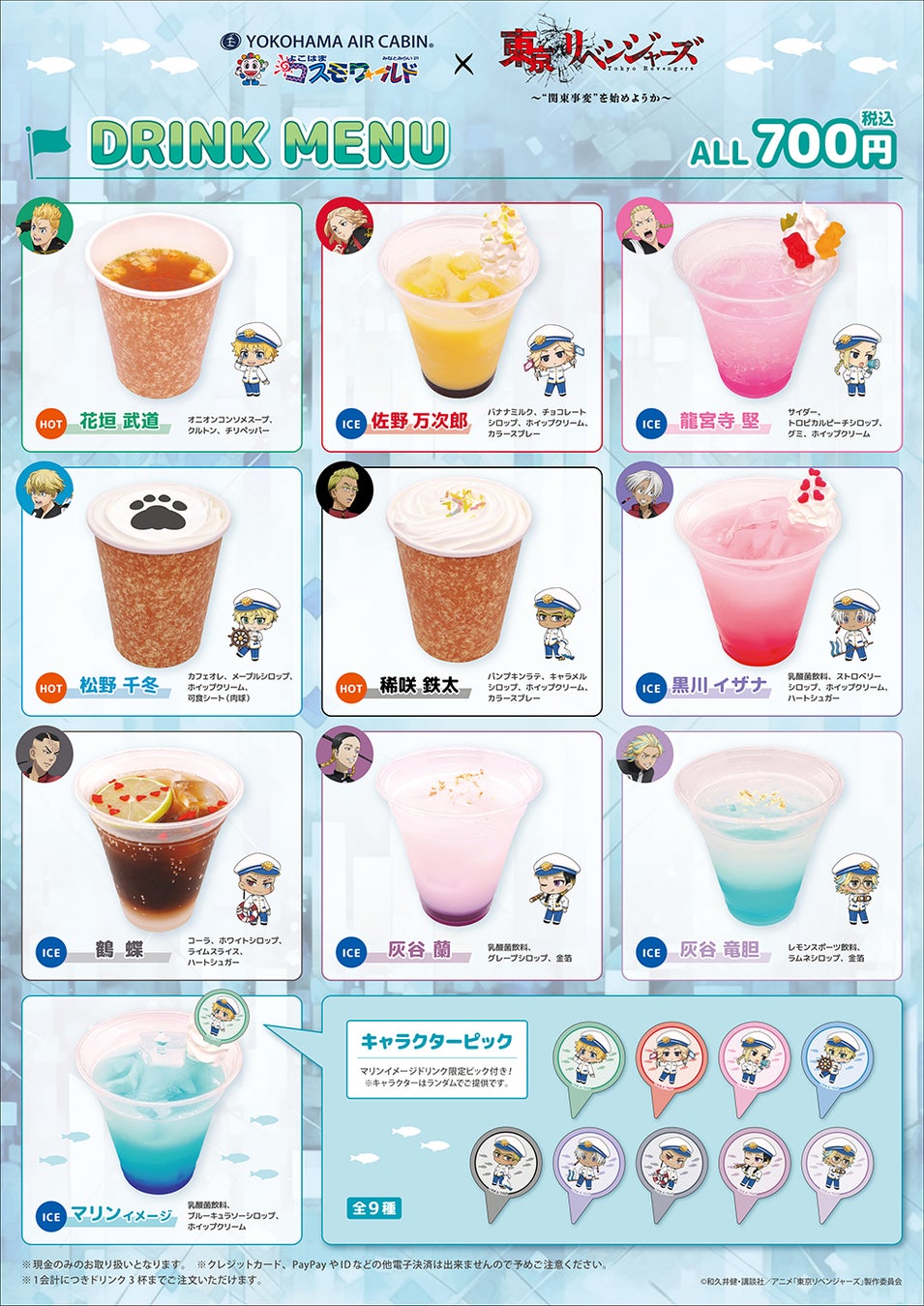 東京卍會・横浜天竺のキャラクターをイメージした10種のコラボドリンクを販売いたします。