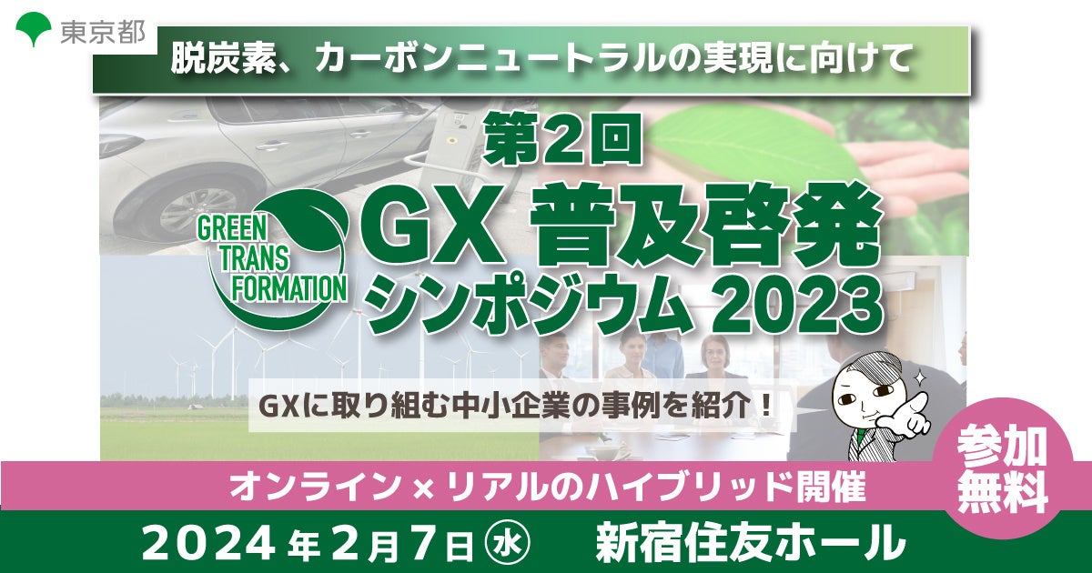 東京都産業労働局は2024年2月7日(水)、中小企業等の脱炭素化への取組を普及啓発するシンポジウムを開催いたします。