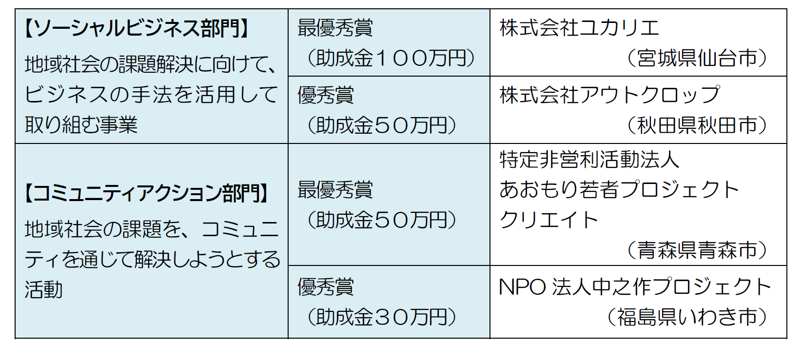 当社は、地域づくり支援制度「東北・新潟の活性化応援プログラム」における2023年の助成団体について、東北6県および新潟県の各地から応募いただいた46団体の中から、厳正な審査の結果、以下の4団体を助成先として決定しました。