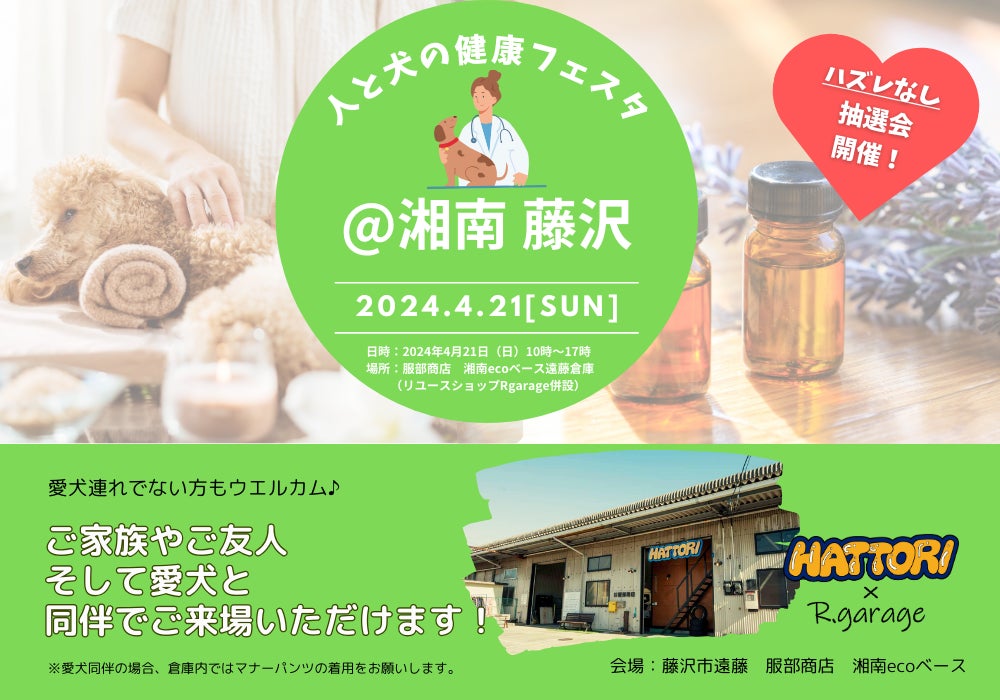 人と犬が心身共に健康であることを願い、「人と犬の健康アカデミー協会(株式会社FVコンサルティング内)」が主催する「人と犬の健康フェスタ@湘南藤沢」が2024年4月21日(日)、株式会社服部商店 湘南ecoベースにて開催されます。
