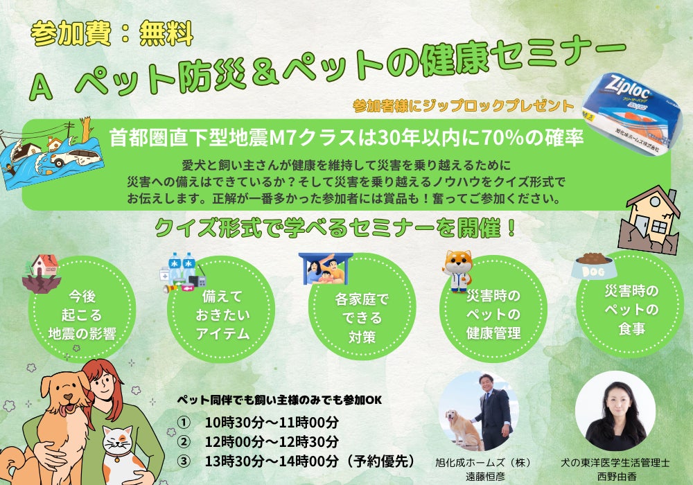 クイズ形式でペットの防災と愛犬の健康管理や食事について楽しく学ぶ(参加費無料)。