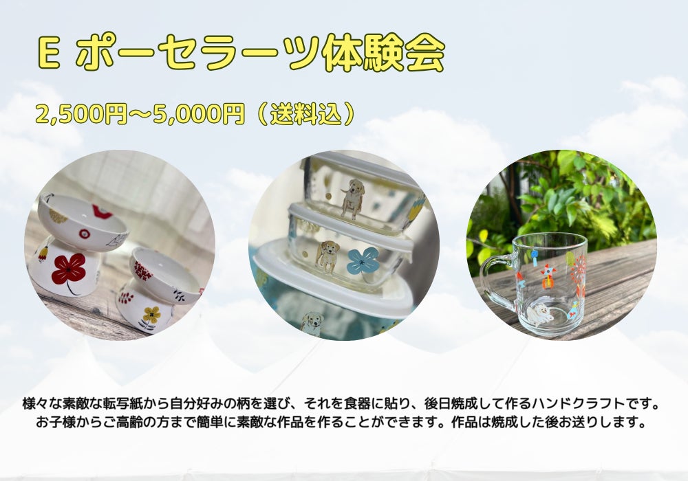 愛犬用のオリジナルフードボールや飼い主様やお子様用のグラス作り(2,000円〜5,000円)。