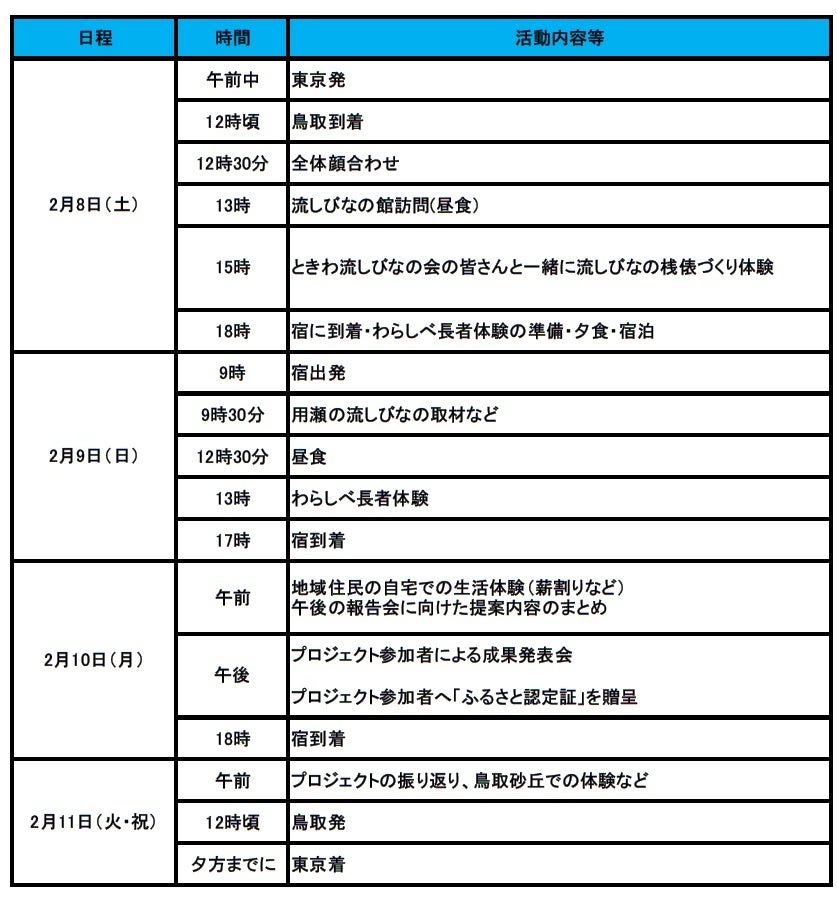 ※鳥取県からの補助を得て実施する予定であるため、鳥取県の「ふるさと来LOVEとっとり」への加入をお願いします。(加入費等は無料)