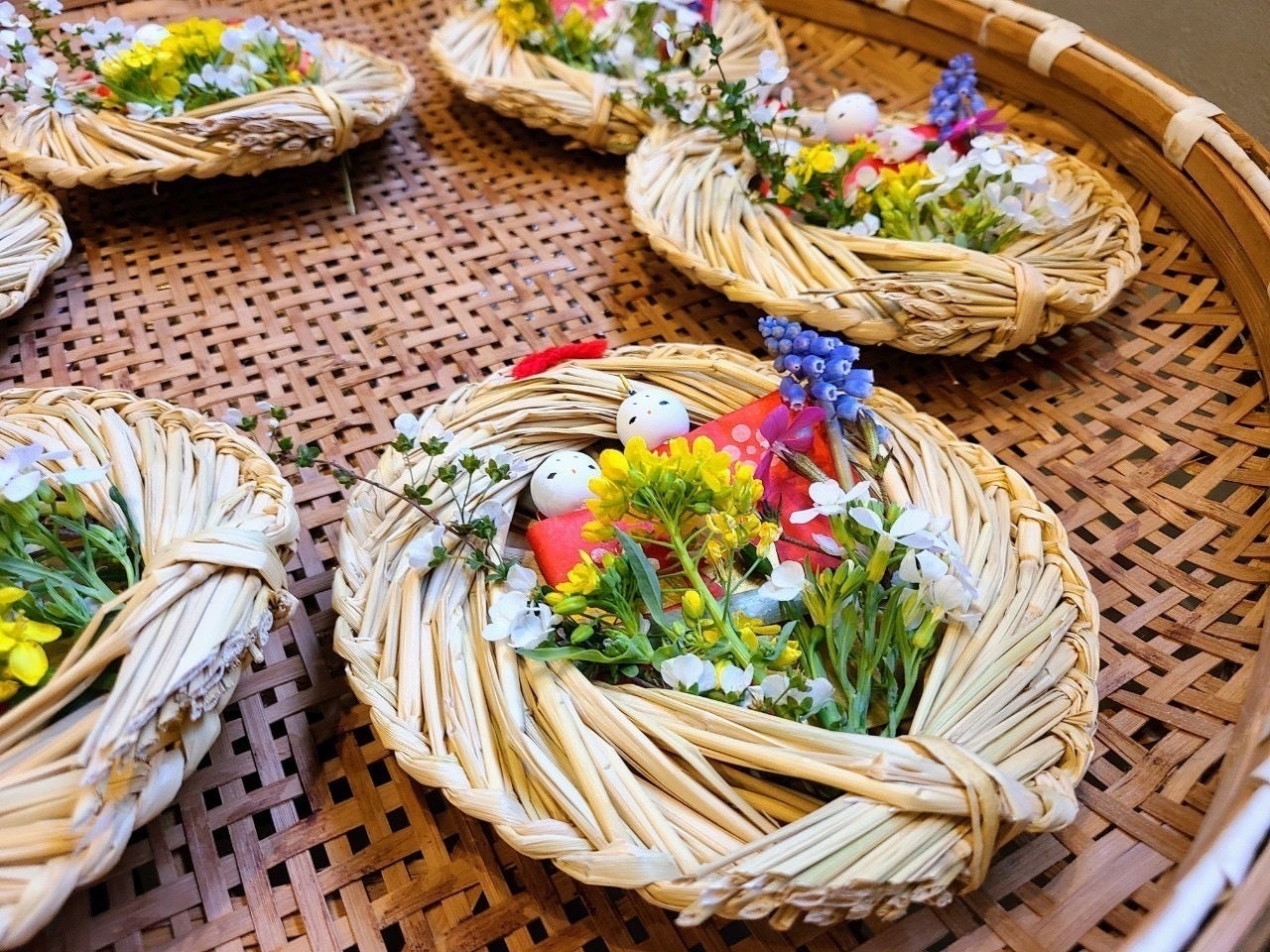 もちがせ流しびなの館を訪問したり、地域で活動されている保存会「ときわ流しびなの会」の皆さんと一緒にさん俵作りを体験します。