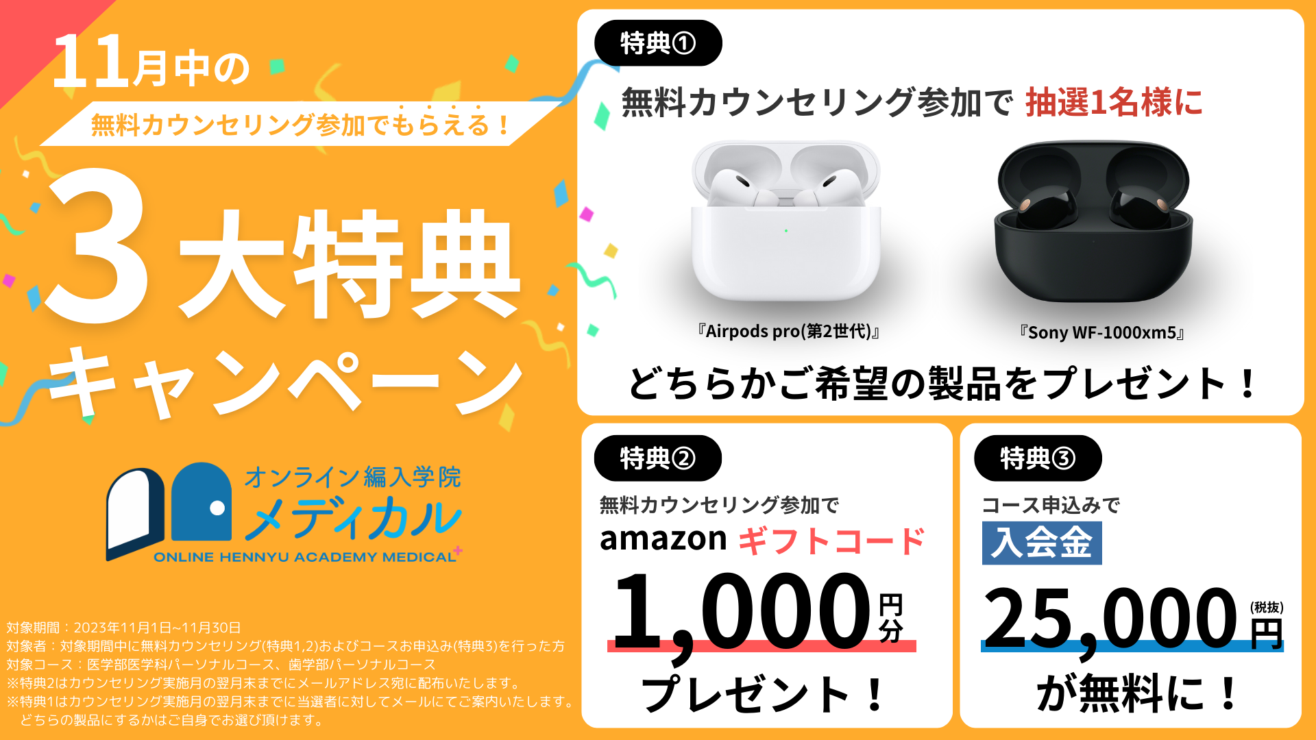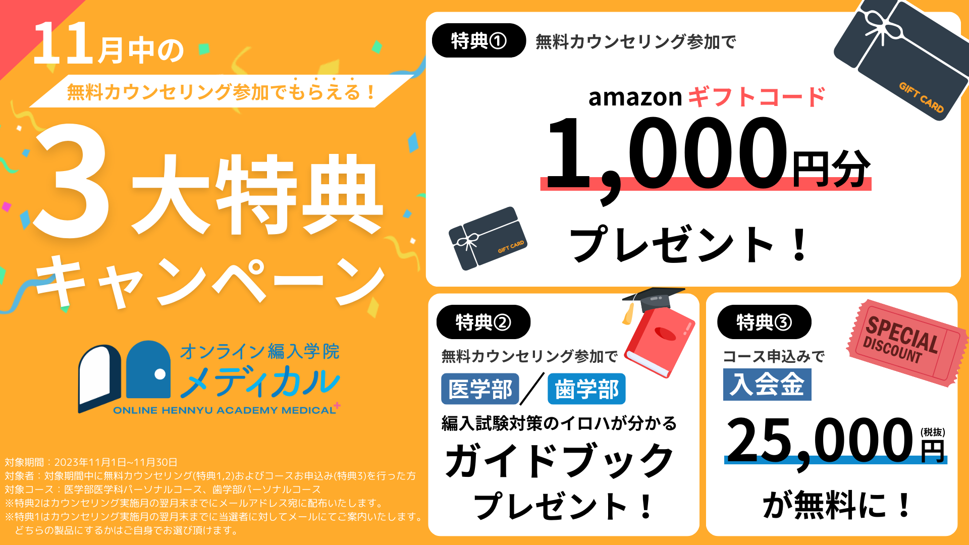 期間限定キャンペーン実施中!3大特典が受け取れるのは11月中のみ!