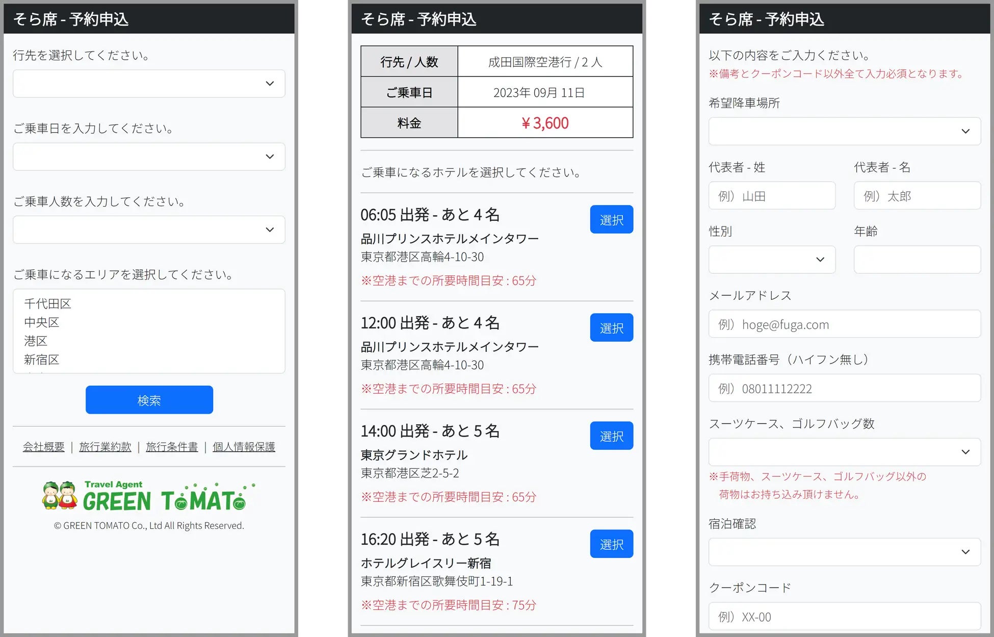 本サービスはGREEN TOMATOが2012年から訪日旅行客向けに販売している空港送迎サービス、エアポートシャトルの空席を利用したもので、エアポートシャトルを運行するために手配済みの東京都内15区*のホテルから成田空港へ向かう車にご乗車いただけます。