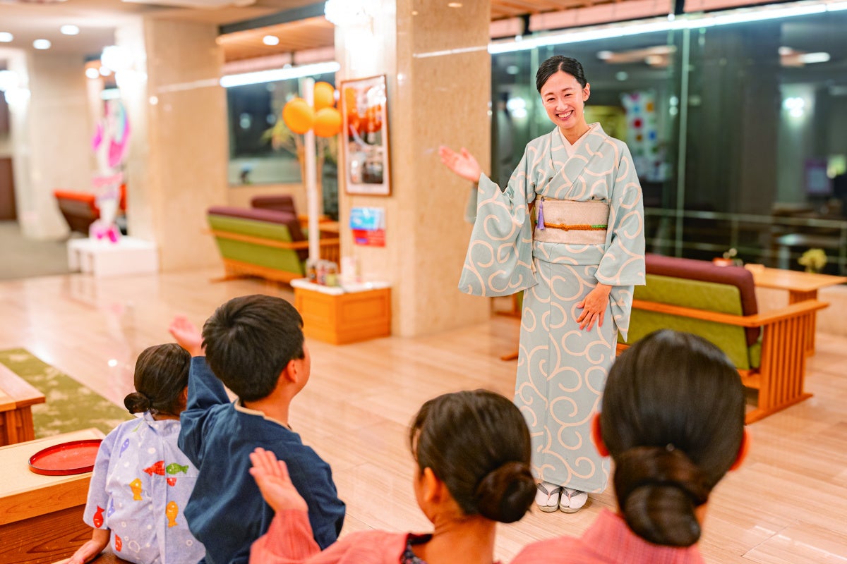 若女将・若旦那の衣装に着替えて、女将とご挨拶の仕方や料理の出し方を学び、ご家族やお客様をもてなす体験をご宿泊のお子様にご提供します。2025年1月から本格スタート!3歳~12歳が対象。