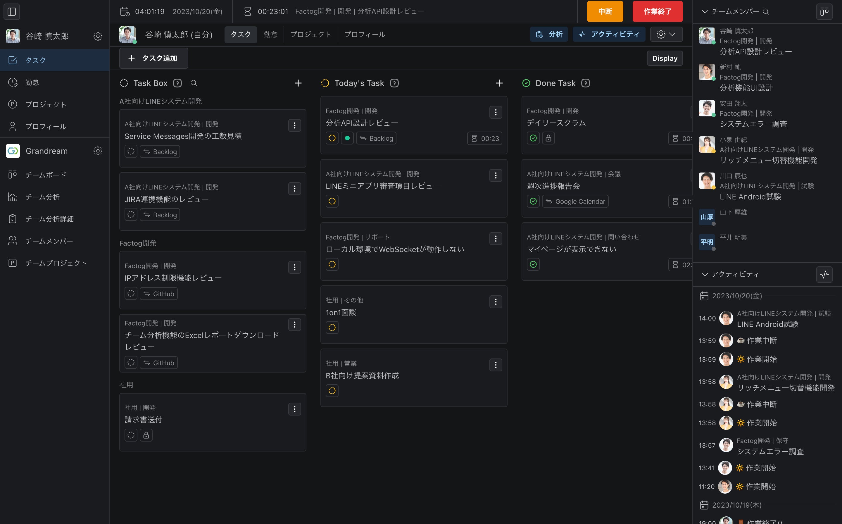 しかし、これらの対策は十分な効果を発揮せず、従業員の負荷は増大し、定着することはありませんでした。これが、私たちが自社用のツールを開発する決断を下すきっかけとなりました。 2020年、社内向けに開発を開始した我々のアプリ、"Factog"。私たちはこのアプリを通じて、リモートワークにおける作業進行状況や勤怠情報をリアルタイムで見える化することを実現しました。それは社内の生産性向上とリモートワークの効率化に大いに貢献しています。 2年間の社内利用を経て、"Factog"の効果を実感し、他のリモートワークを行っている企業にもその効果を享受してもらいたいと考えるようになりました。そこで私たちは、"Factog"を一般に公開する決断をしました。