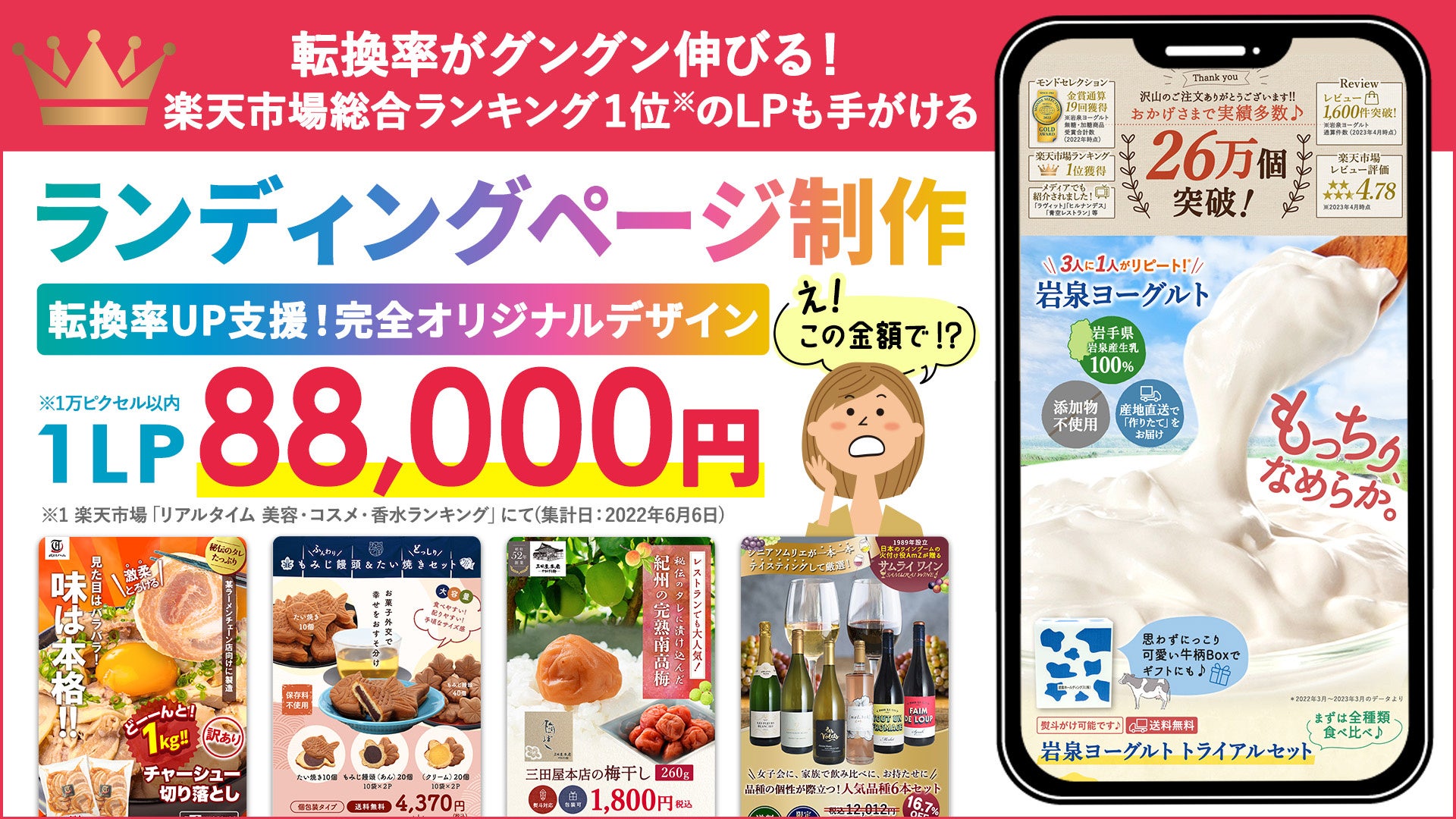 【1LP88,000円】ブランディングを踏まえた商品LP制作サービスが楽天RMSサービススクエアに正式登録— 完全オリジナルデザイン&業界最安値クラスで提供開始—株式会社アイズプランニング