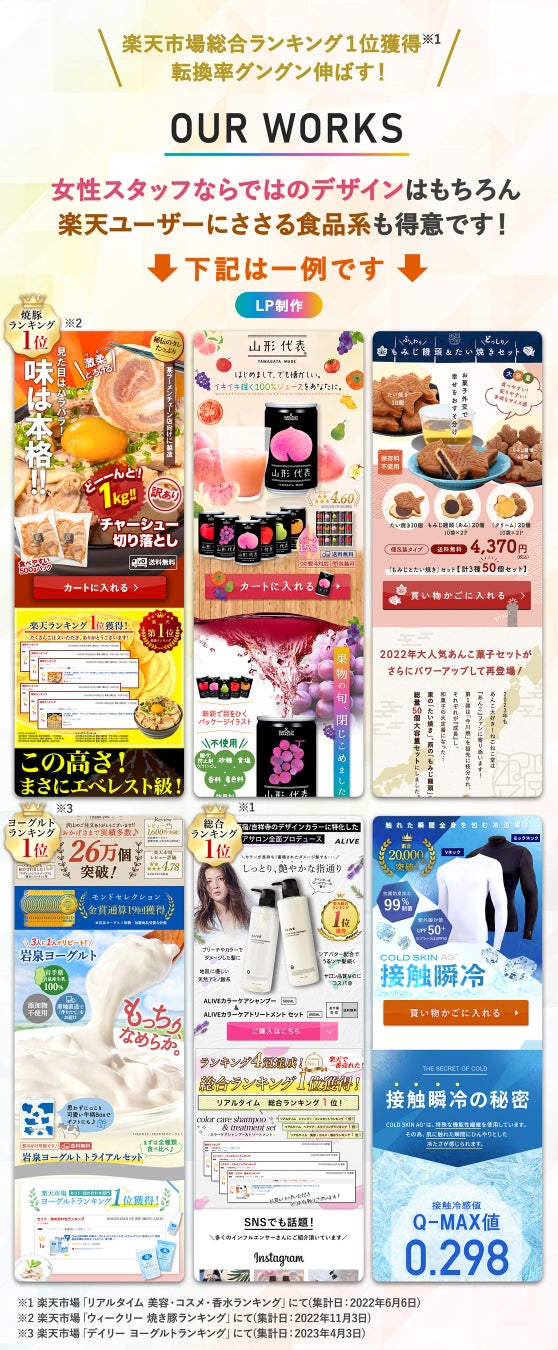 1.楽天総合ランキング1位のLPを手掛けた実績も