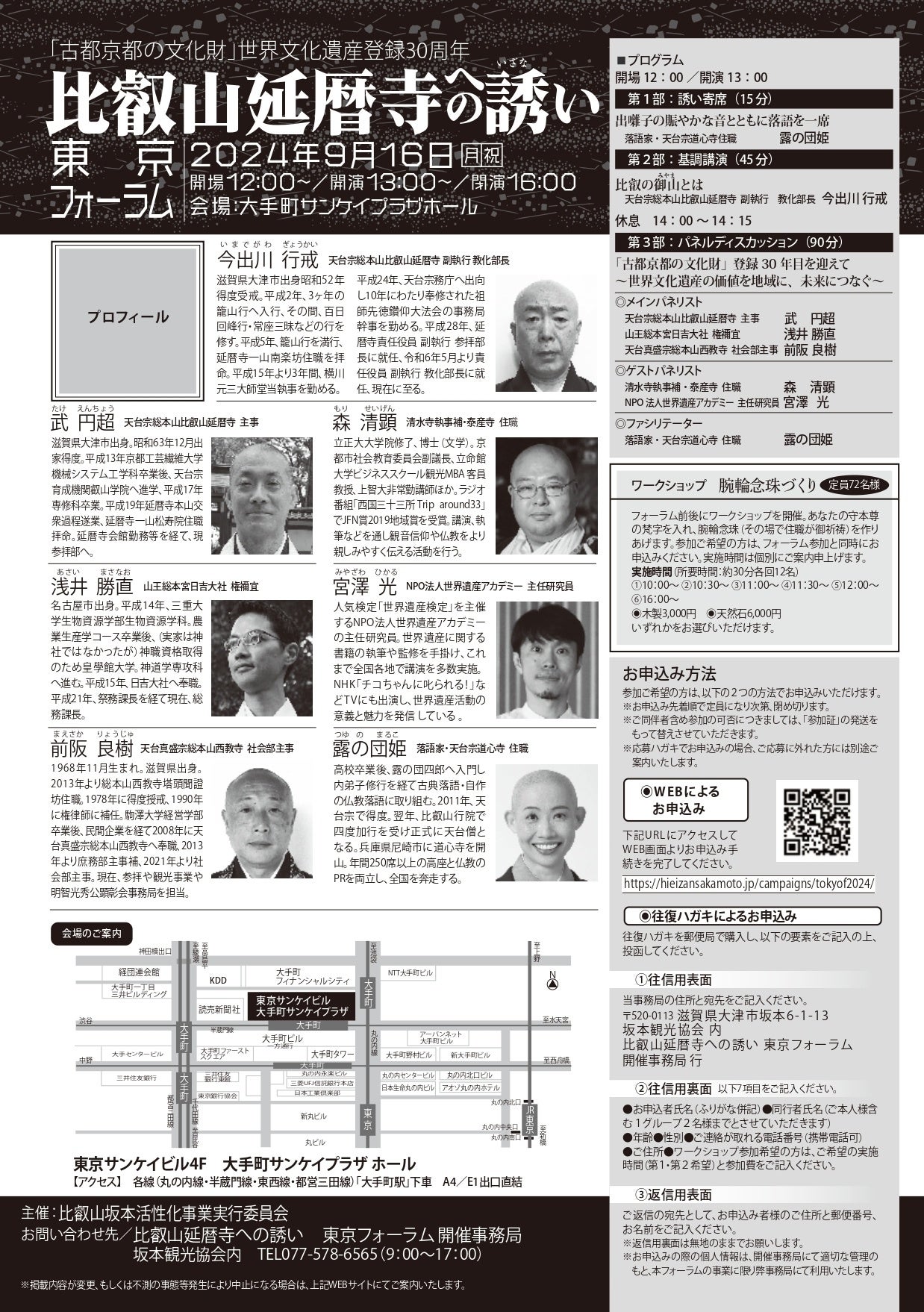 おいて8回目となる「世界文化遺産 比叡山延暦寺への誘い 東京フォーラム」を開催します。