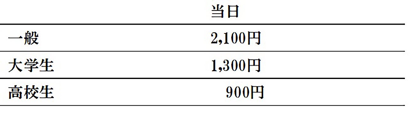 観覧料:一般2,100円、大学生1,300円、高校生900円 他 (すべて税込)