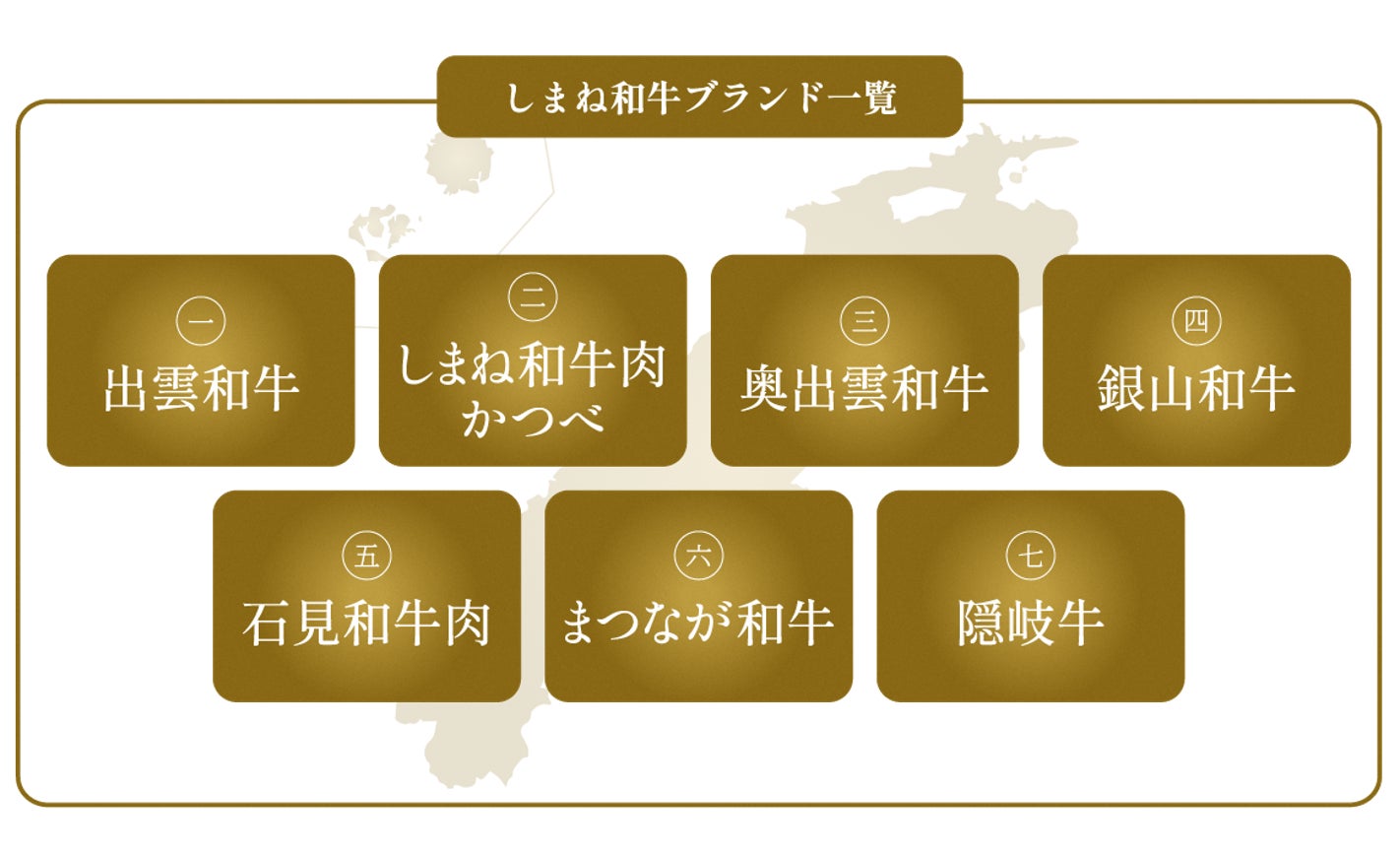 ※1 島根県内で生産された黒毛和牛肉の総称(奥出雲和牛・隠岐牛・石見和牛などの地域ブランド、まつなが牛・かつべ牛などの農場ブランドの牛肉も含まれる)