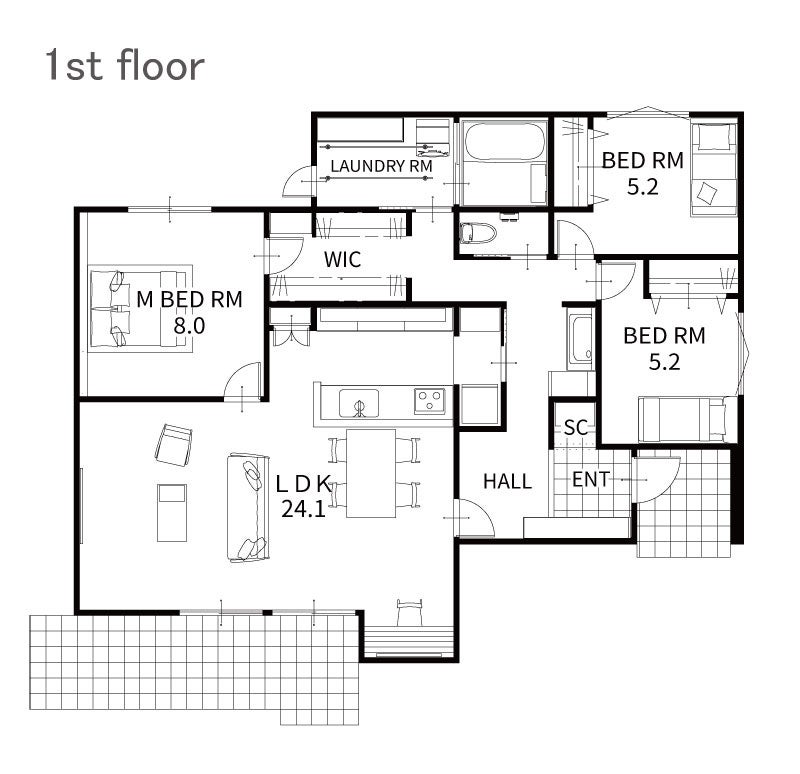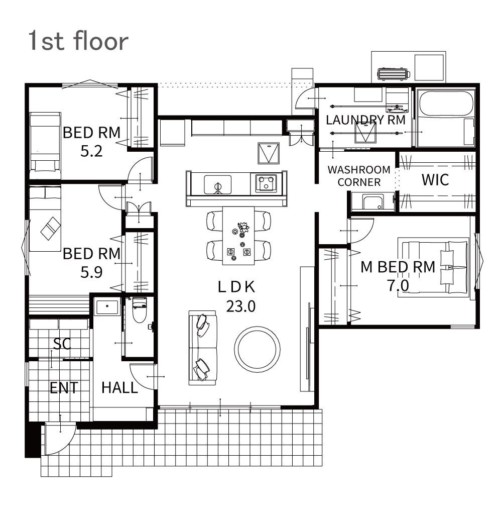 ●暮らしの一体感: 生活空間が一階にまとまっているため、家族間のコミュニケーションが取りやすく、家全体としての一体感が生まれやすいです。